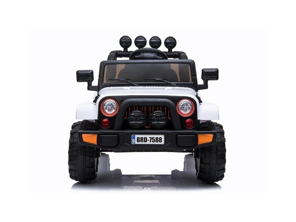 Snadno ovladatelné, dobře postavené a pěkně zpracované, vlastní terénní auto, které vás a vaše sourozence odveze na hřiště. Rodinné výlety a dlouhé procházky budou pro vaše děti jednodušší a zábavnější. Bílý BRD-7588 s elektrickým pojezdem na autě. 38 cm široká měkká sedačka je potažena černou ekologickou kůží pro pohodlí vašich dětí. Auto se startuje klíčem. Po zapnutí stačí vybrat směr jízdy, ale nemusíte se bát, protože jako rodič můžete mít stále plnou kontrolu pomocí 2,4G dálkového ovládání.