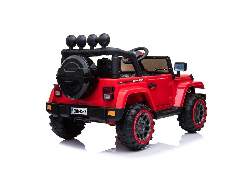 Pokud sníte mít vlastní terénní auto a projet se na hřiště, toto auto je pro vás ideální. Rodinné výlety a dlouhé procházky budou pro vaše děti jednodušší a zábavnější. Červená BRD-7588 s elektrickou jízdou na autě. 38 cm široká měkká sedačka je potažena černou ekologickou kůží pro pohodlí vašich dětí. Auto se startuje klíčem. Po zapnutí stačí vybrat směr jízdy, ale nemusíte se bát, protože jako rodič můžete mít stále plnou kontrolu pomocí 2,4G dálkového ovládání.