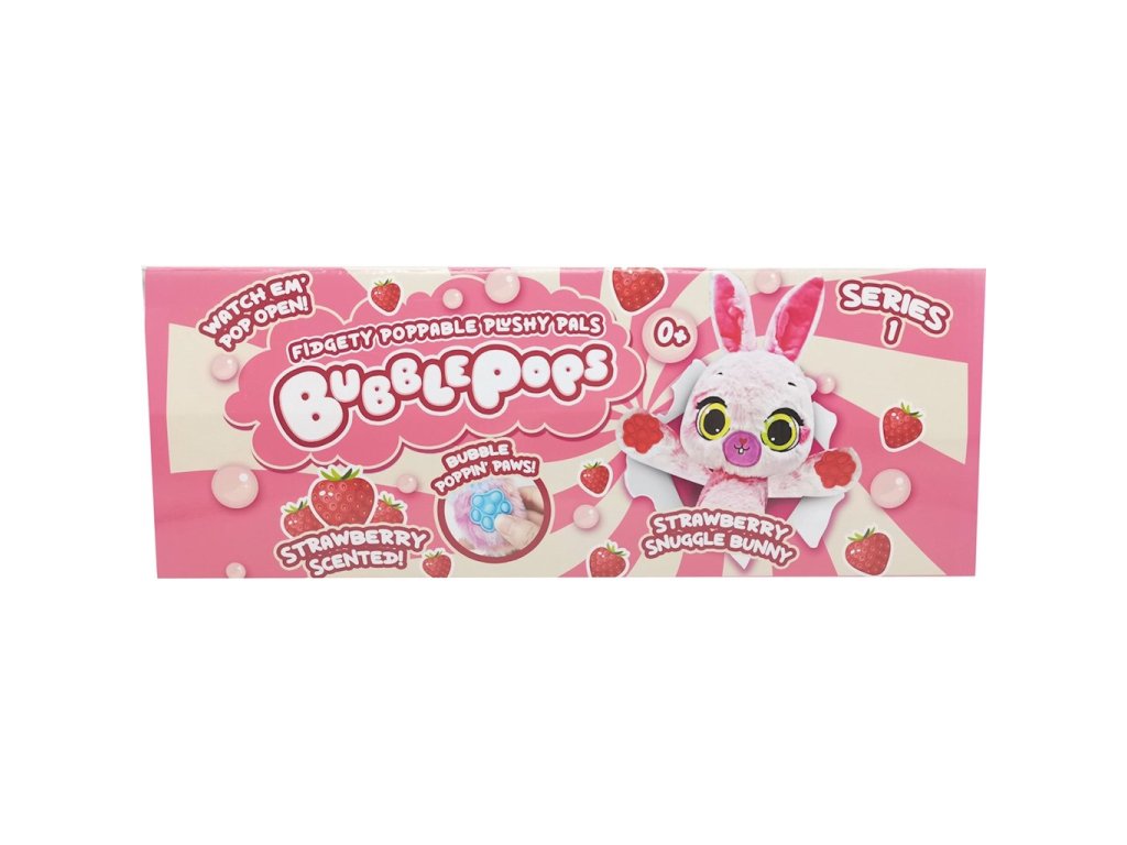 Plyšový jahodový zajíček s vůní BubblepopsZažijte jedinečné rozbalení s BubblePops! Když uvidíte barevnou krabičku, která vypadá jako obal od žvýkaček, nebudete hned hádat, jaká roztomilá hračka se uvnitř skrývá. Otevřete obal a budete překvapeni, co z něj vypadne!