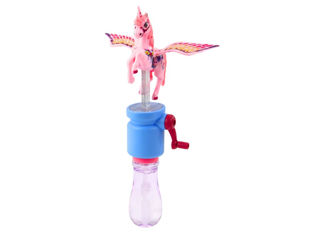 Jednorožčí mýdlové bubliny nejsou jen klasickou zábavou, ale také kouzelným vizuálním efektem! Tato unikátní hračka vysoká 23 cm je vybavena mechanismem s klikou, díky kterému při otáčení jednorožec pohybuje křídly a vytváří tak dojem letu.
