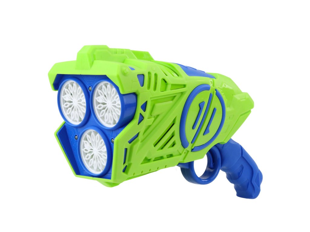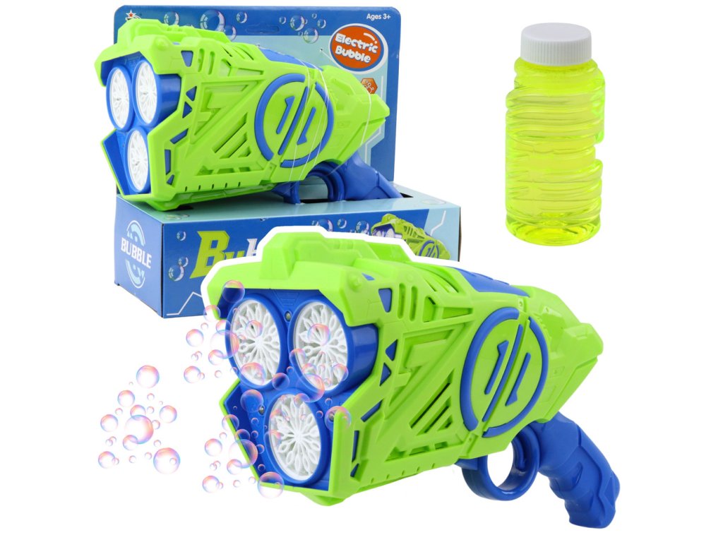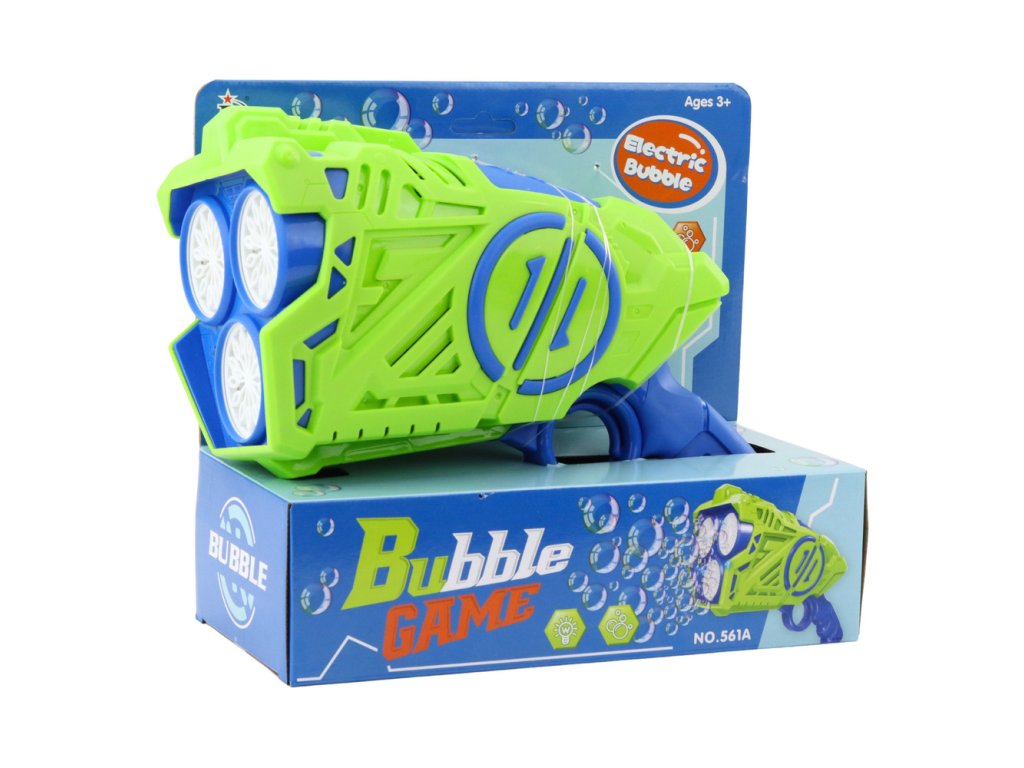 Modrozelená bublinková pistole je inovativní hračka, která dětem poskytuje spoustu radosti a fascinující zábavy. Díky víceotvorové trysce a vestavěným LED světelným efektům vytváří přístroj opravdovou podívanou - barevné bubliny plovoucí vzduchem doprovázené blikajícími světýlky, které potěší děti i dospělé.