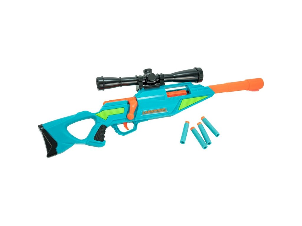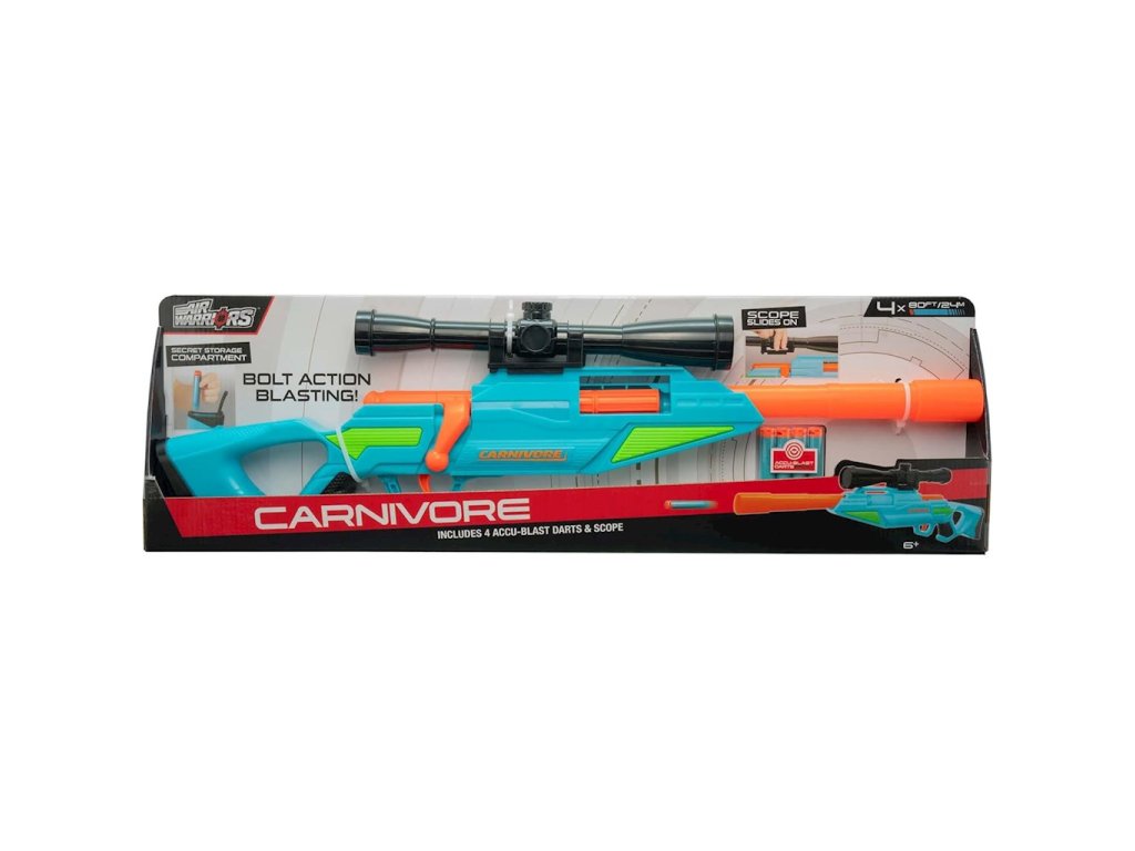 BuzzBee Carmivore je jednoduchý, ale zábavný vystřelovač šípů od společnosti BuzzBee. Je vybavena klasickým systémem nabíjení Bolt-Action, kdy se při nabíjení šipky zasune závěr dozadu a poté se komora opět uzavře. Jakmile bude připraven, míření vám usnadní připojitelný zaměřovač ve tvaru puškohledu.Vlastnosti a obsah sady: