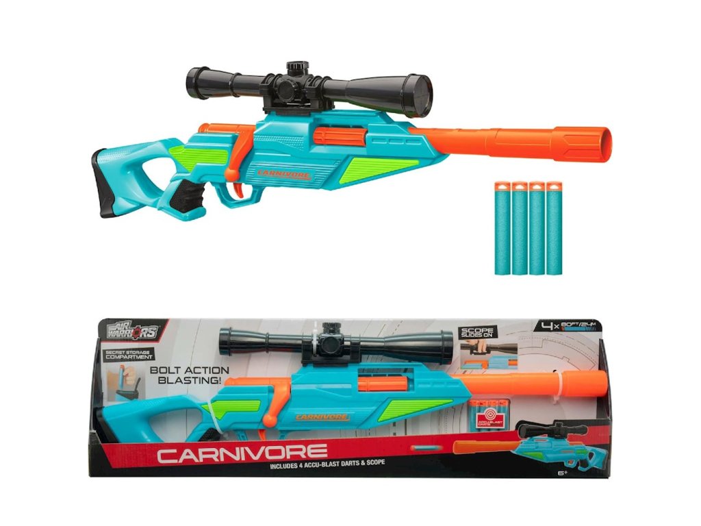 BuzzBee Carmivore je jednoduchý, ale zábavný vystřelovač šípů od společnosti BuzzBee. Je vybavena klasickým systémem nabíjení Bolt-Action, kdy se při nabíjení šipky zasune závěr dozadu a poté se komora opět uzavře. Jakmile bude připraven, míření vám usnadní připojitelný zaměřovač ve tvaru puškohledu.Vlastnosti a obsah sady: