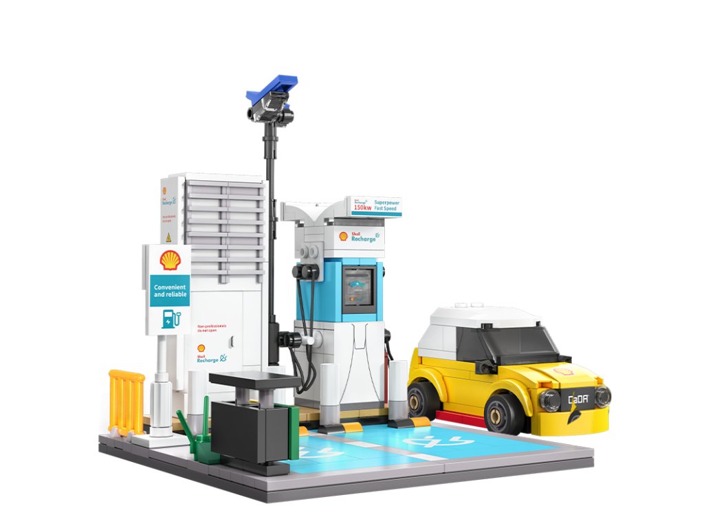 Sada se skládá z 308 prvků a umožňuje vám sestavit si nabíjecí stanici Shell vlastními silami.