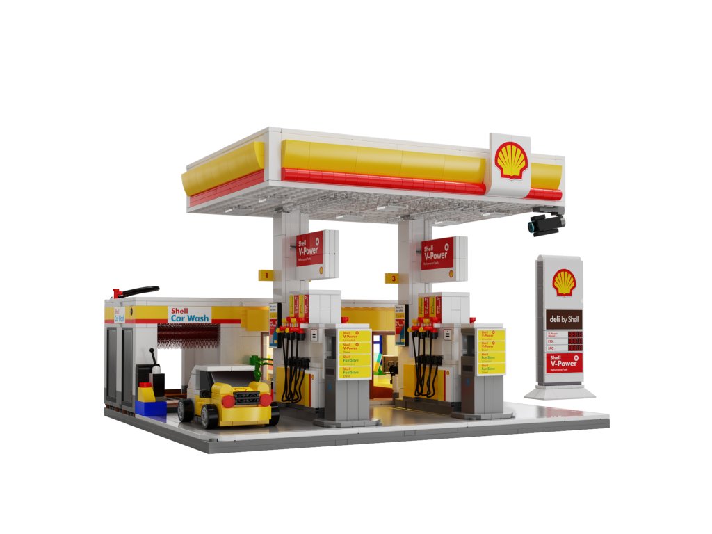 - 1309 dílků k sestavení plně detailní čerpací stanice Shell.