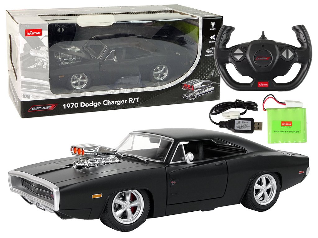 Tento model vozu Dodge se vyznačuje elegantním černým lakem, který mu dodává jedinečný a exkluzivní vzhled. Světla zvyšují dojem autenticity a umožňují jízdu v noci.