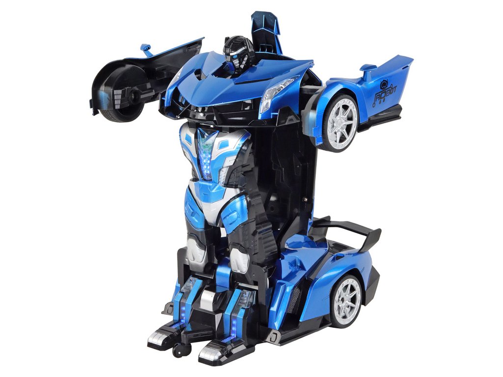 Představujeme revoluční Remote Controlled RC Robot Car v měřítku 1:10 v elegantní modré barvě - spojení dokonalosti sportovního vozu s fascinující funkcí proměny v robota. Jeho designový vzhled s důrazem na detail odráží realistický charakter skutečného sportovního vozu.