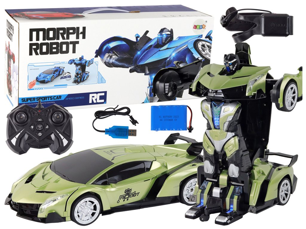 Představujeme revoluční Remote Controlled RC Robot Car v měřítku 1:10 v elegantní zelené barvě - spojení dokonalosti sportovního vozu s fascinující funkcí proměny v robota. Jeho designový vzhled s důrazem na detail odráží realistický charakter skutečného sportovního vozu.