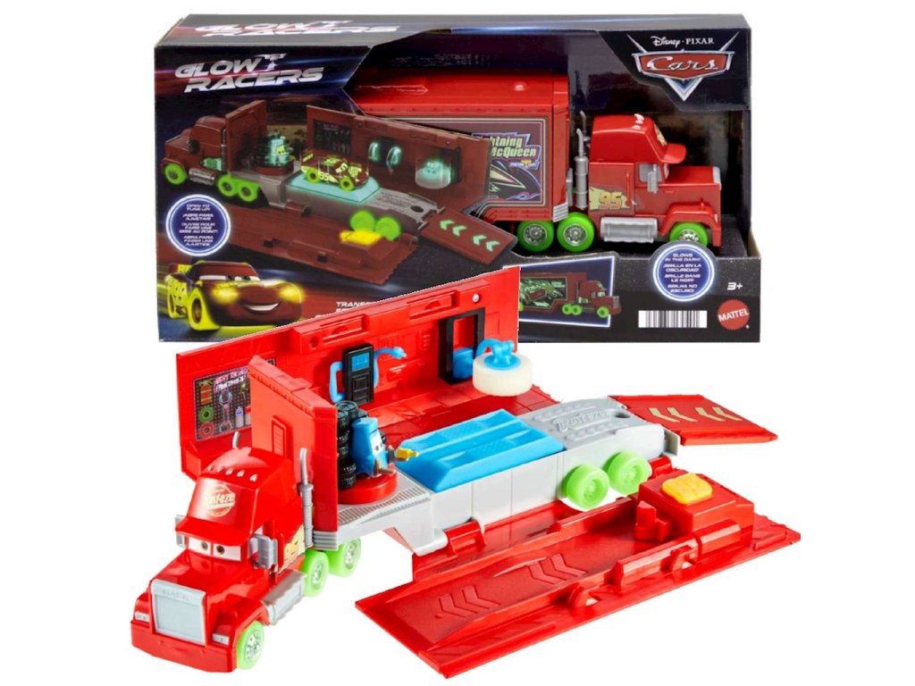 Začněte se bavit se sadou Svítící ve tmě Auta Manic! Tato sada vám umožní rozsvítit vaše závodní dobrodružství pomocí svítících prvků. Maniek plní dvojí funkci: slouží jako transportér a rozkládací servisní středisko. Otevři jeho přívěs a najdeš Guida, připraveného zkontrolovat pneumatiky před dalším závodem! Jakmile sadu zavřeš, můžeš vyrazit na cestu. Náklaďák je zdoben detaily inspirovanými filmem, které ve tmě svítí. Přehrávej si své oblíbené scény, vytvářej nová dobrodružství a rozvíjej svou fantazii!Jedinečné vlastnosti výrobku: Vůz je vybaven speciálními funkcemi, které umožňují rychlou jízdu: