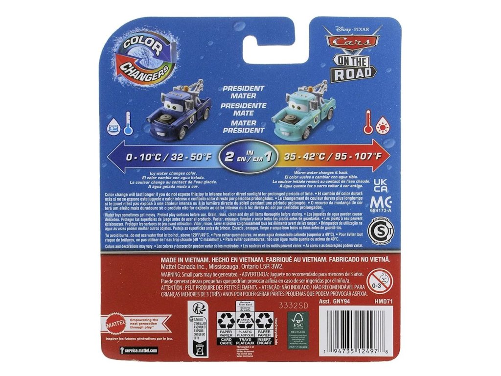 Auto President Mater je filmová postava s jedinečnou osobností. Díky animovaným očím a zářivým barvám vypadají auta jako ve filmu. Autíčka mají pohyblivá kola. Obrovská sbírka filmových postaviček ke sbírání.Objevte novou zábavu s autíčky Color Changers!