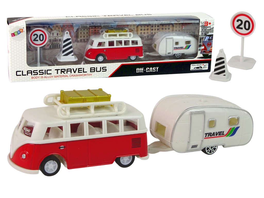 Celá sada je vyrobena z kvalitního plastu. Každý prvek byl dokonale reprodukován a připomíná svůj skutečný protějšek. Velký autobus skutečně pojme skupinu lidí, vnitřek je proveden velmi realisticky. Na malý háček lze připevnit malý karavan, který se osvědčí jako přespání a malý mobilní dům na výletech. Dopravní značky, které jsou součástí sady, můžete umístit podél trasy autobusu. Se všemi figurkami lze hrát společně nebo samostatně. Výběr je na vašem dítěti!