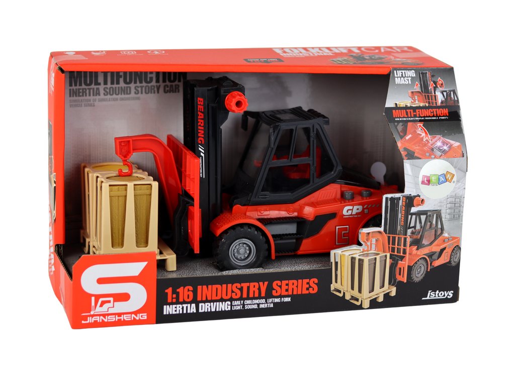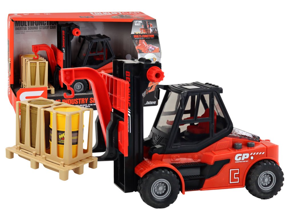 Červený vysokozdvižný vozík 1:16 Pohybující se vidlice Zvuky Světla