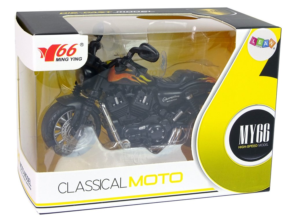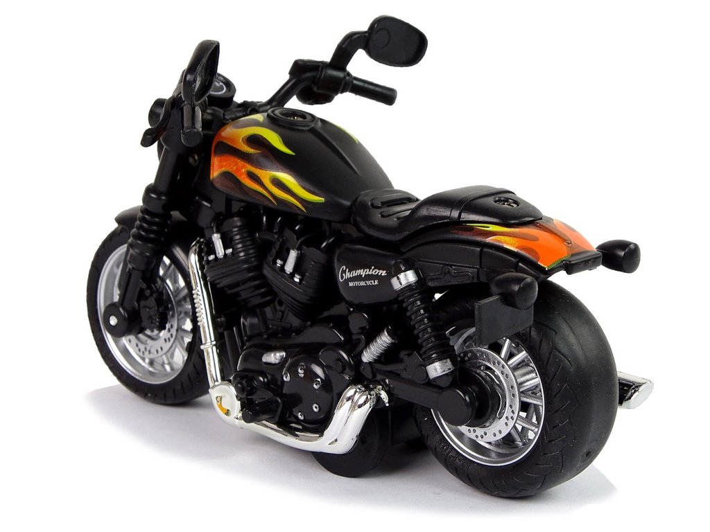 Rychlé motorky, závodníci, kteří se objevují na našich silnicích, vzbuzují zájem nejen těch nejmenších, ale i dospělých. To je něco pro fanoušky motorismu a extrémní jízdy. Model Champion může doplnit kolekci nebo se jednoduše stát oblíbenou hračkou. Úžasný vzhled, plamenné prvky podnítí představivost a zažehnou vášeň.