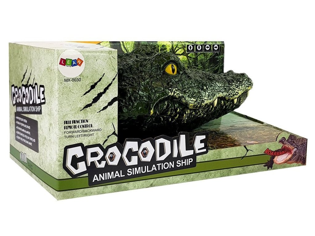 Tvar krokodýlí hlavy byl reprodukován velmi realisticky. Ostré a hladké zuby, žluté oči a zelená kůže pokrytá šupinami připomínají skutečného krokodýla. Tato verze je tak děsivá, jak jen může být, ideální pro hraní v letních večerech u rybníka nebo v bazénu. Možnost dálkového ovládání potěší a rozvine manuální zručnost vašeho dítěte.