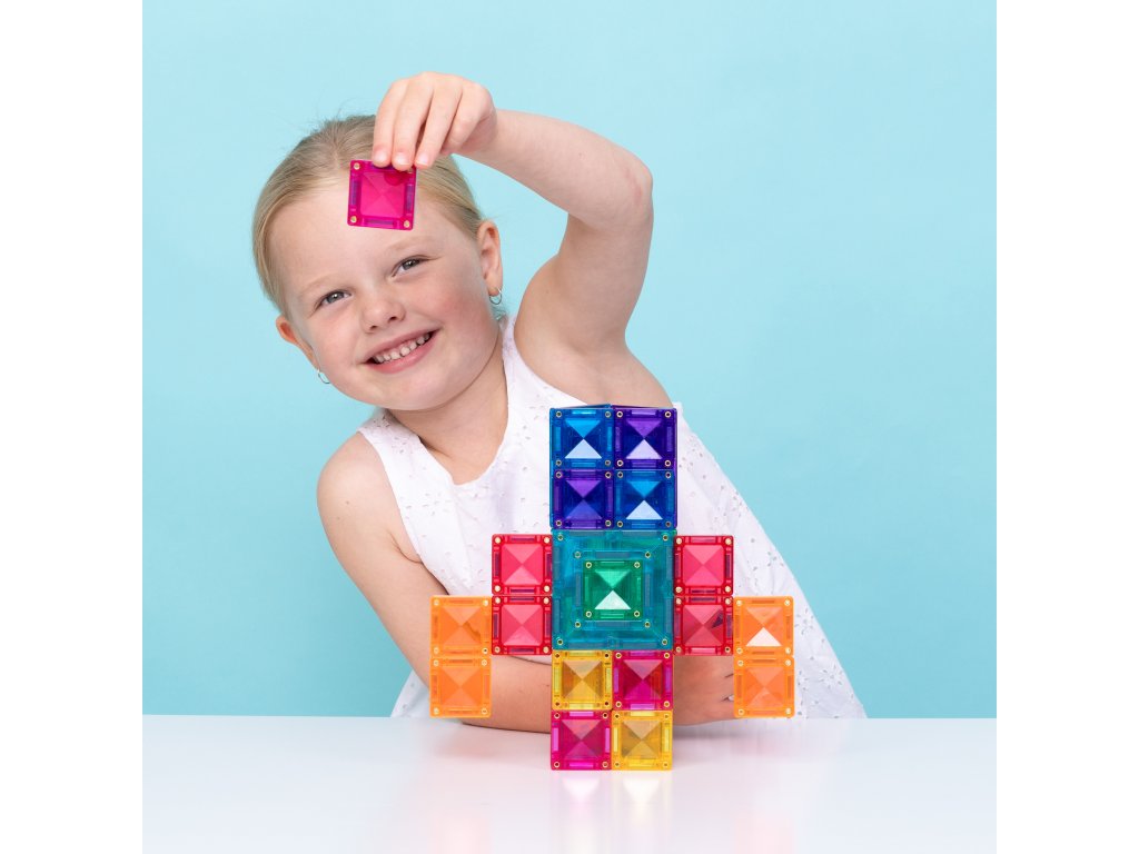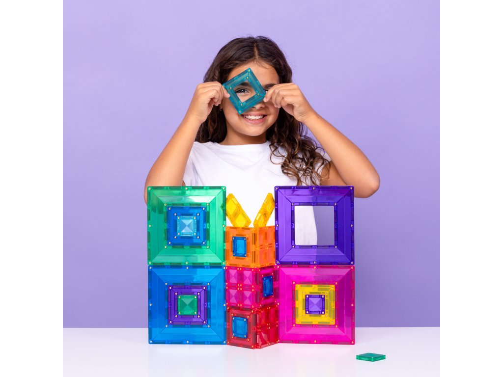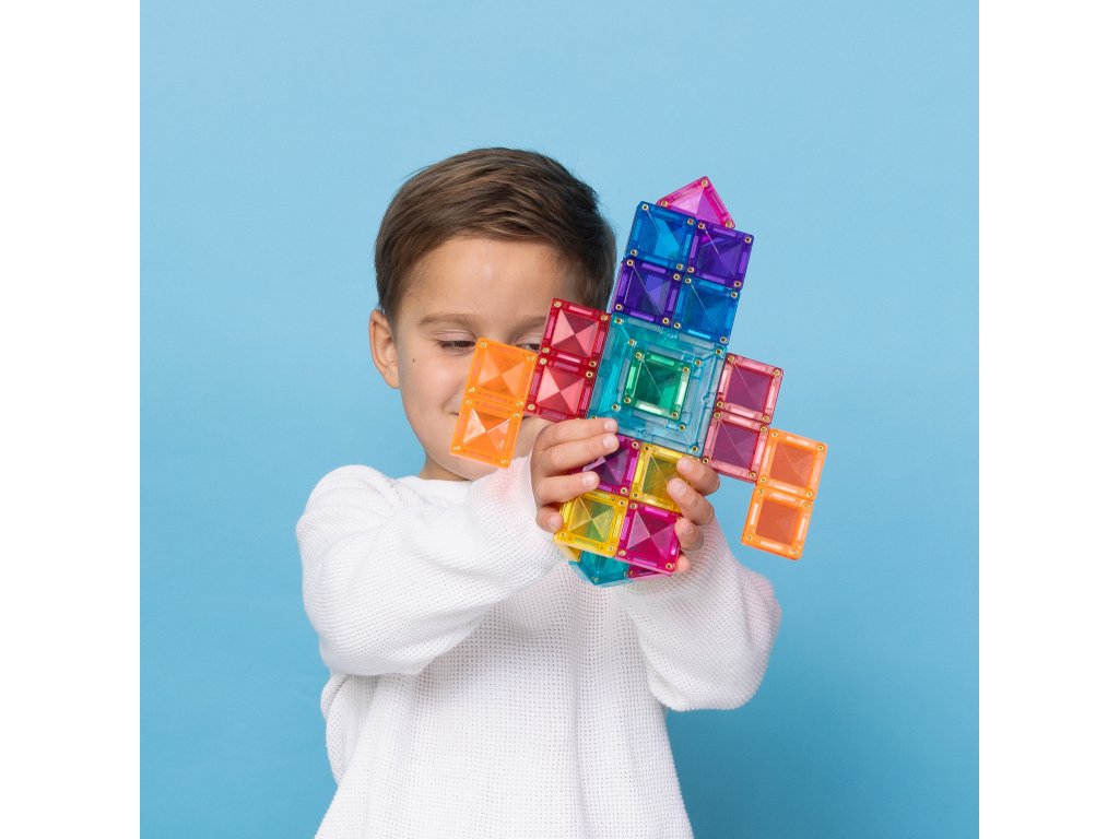 Průhledné, barevné dlaždice se nebarví a jsou odolné vůči poškození. Vestavěné, nýtované, silné neodymové magnety umožňují, aby se bloky přitahovaly ze všech stran a vytvářely tak stabilní, trojrozměrné modely. Unikátní „cvaknutí“ spojování dlaždic poskytuje mladým inženýrům uspokojení.
