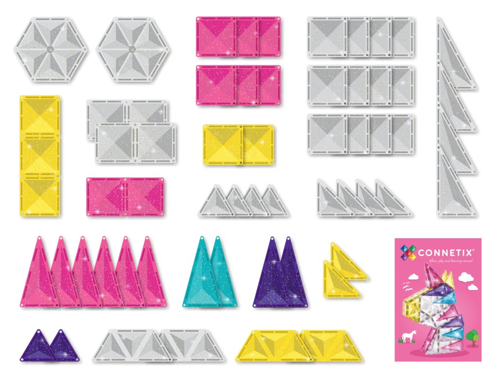 CONNETIX Glitter Unicorn Pack – kreativní magnetické kostky s třpytkami 56 dílků