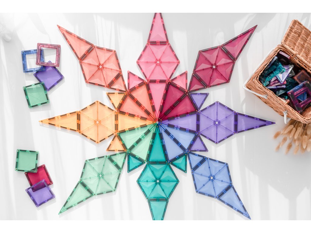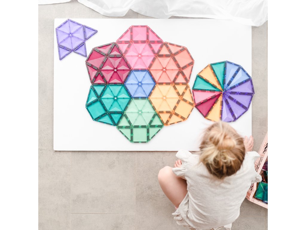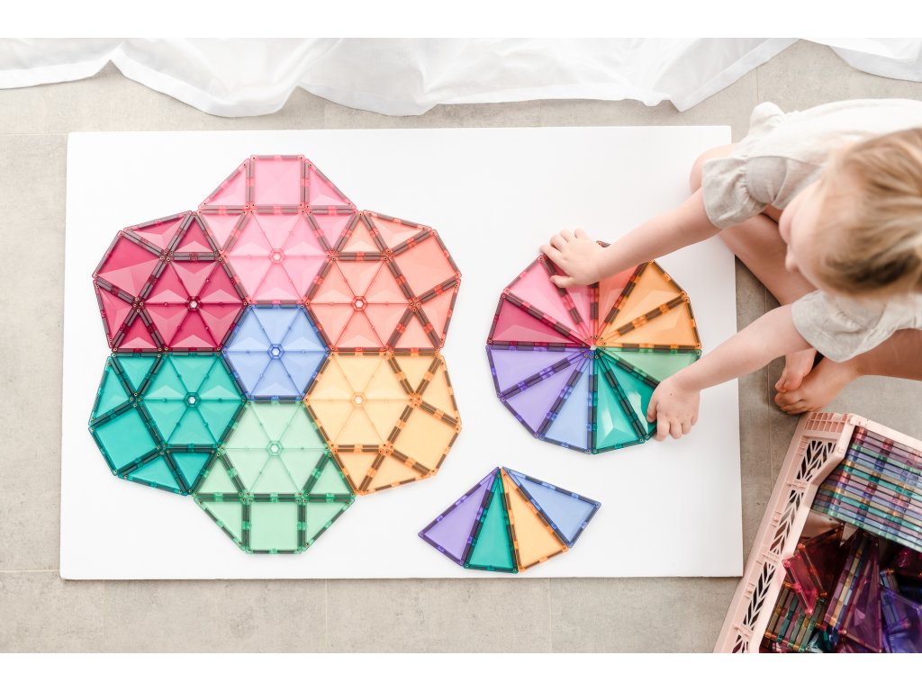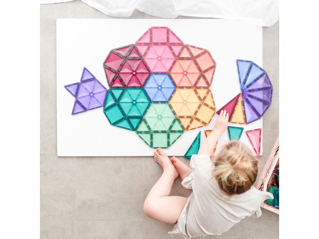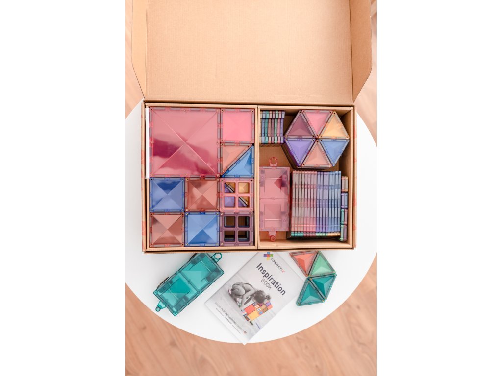 Tato 202 kusová sada v pastelových barvách je počátkem nekonečných staveb, díky kterým si děti stavěním trojrozměrných hradů, mostů nebo vesmírných raket nevědomky rozvíjejí PÁRA dovednosti od fyziky, umění, magnetismu, prostorového inženýrství až po techniku. geometrie!