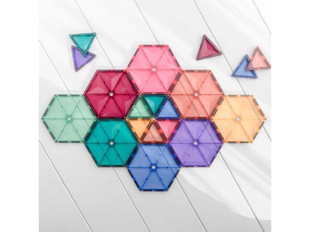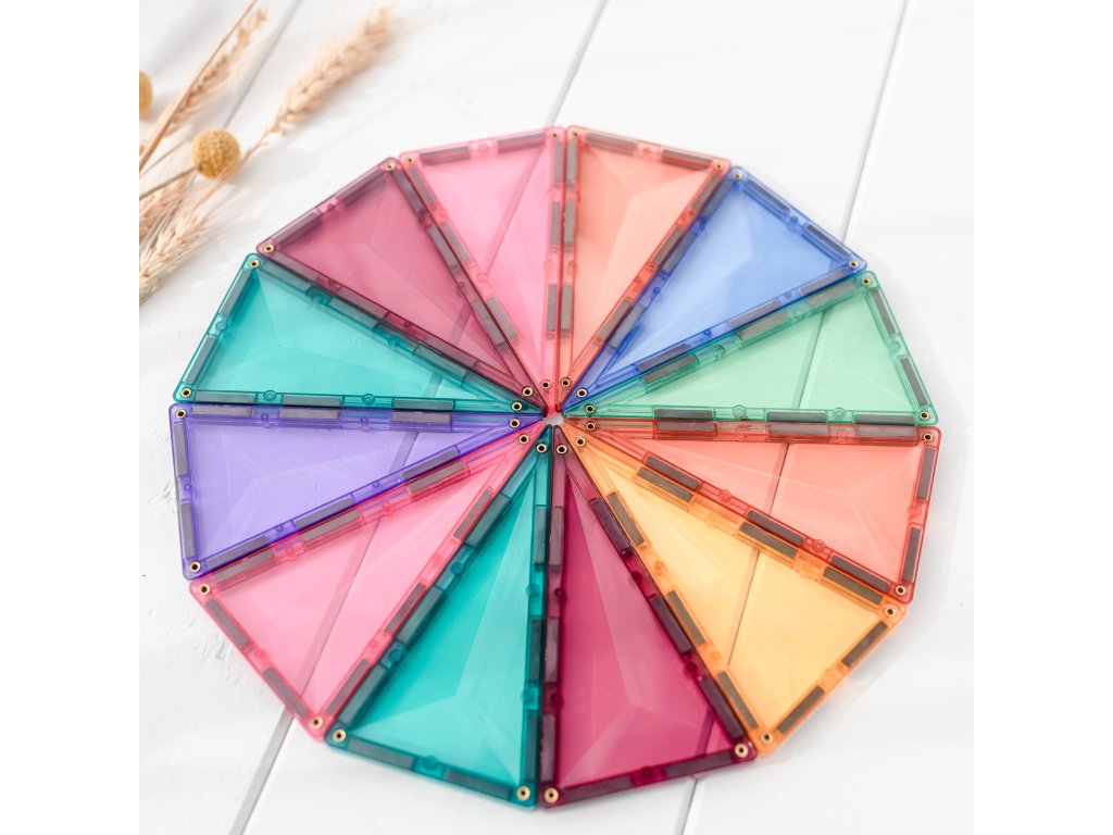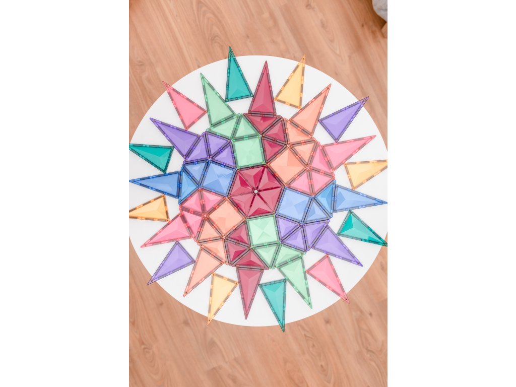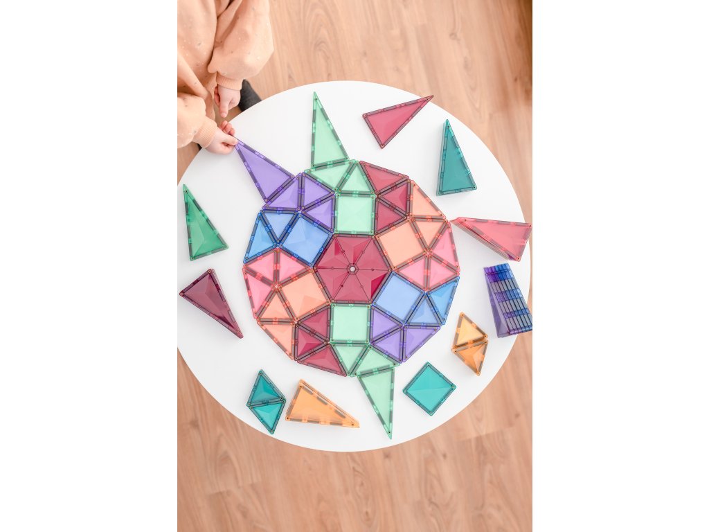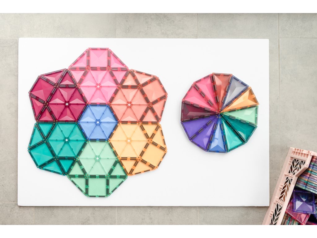Tato 202 kusová sada v pastelových barvách je počátkem nekonečných staveb, díky kterým si děti stavěním trojrozměrných hradů, mostů nebo vesmírných raket nevědomky rozvíjejí PÁRA dovednosti od fyziky, umění, magnetismu, prostorového inženýrství až po techniku. geometrie!