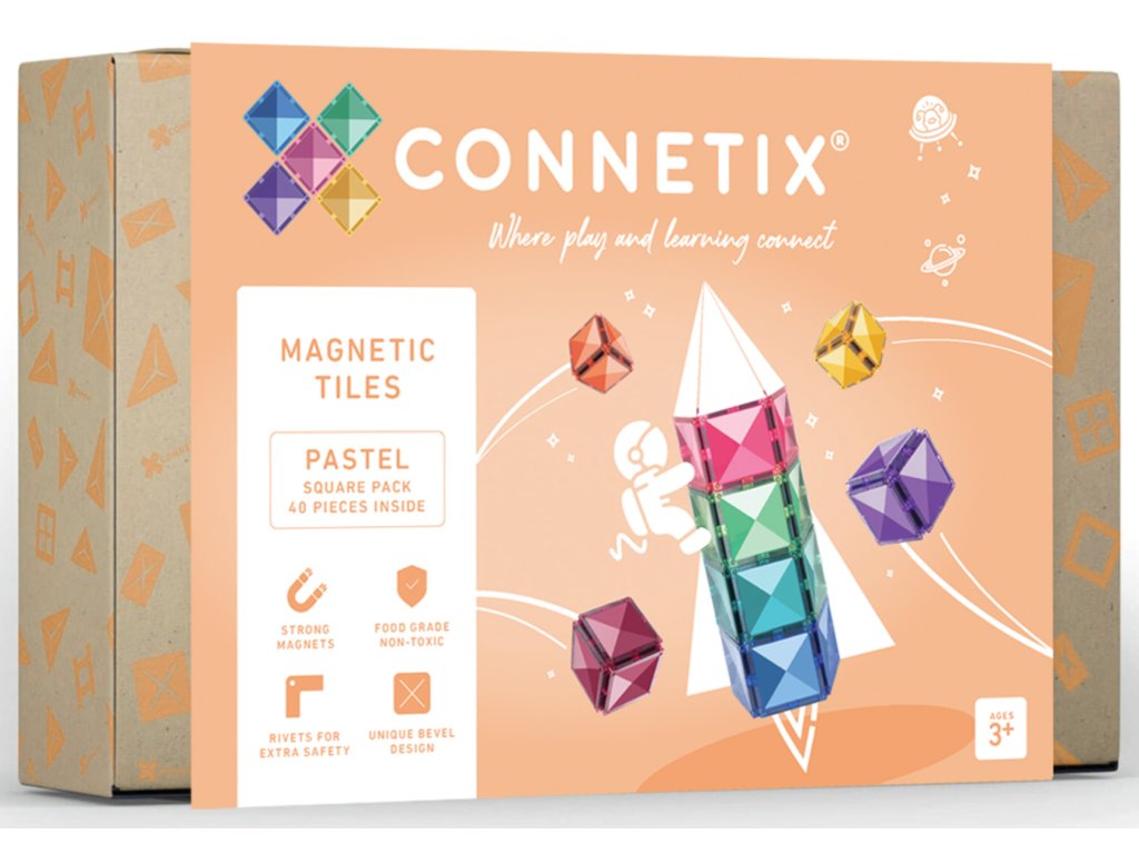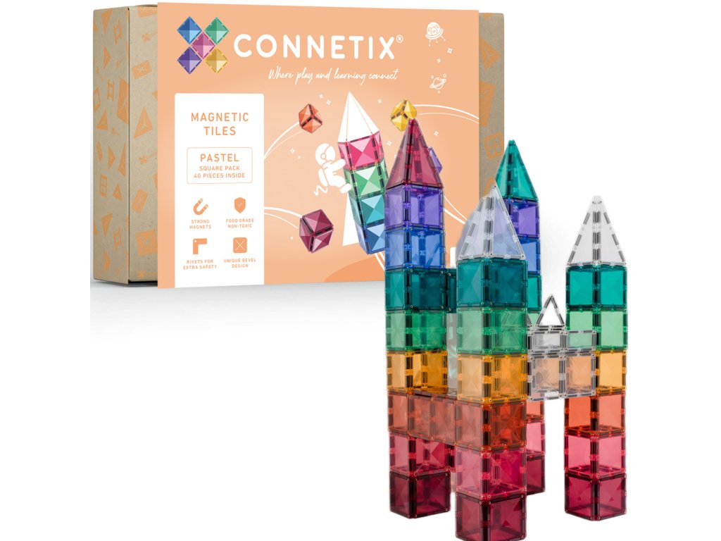 Tato 40 kusová sada v pastelových barvách je počátkem nekonečných staveb, díky kterým si děti stavěním trojrozměrných hradů, mostů nebo vesmírných raket nevědomky rozvíjejí PÁRA dovednosti od fyziky, magnetismu až po prostorovou techniku, geometrie!