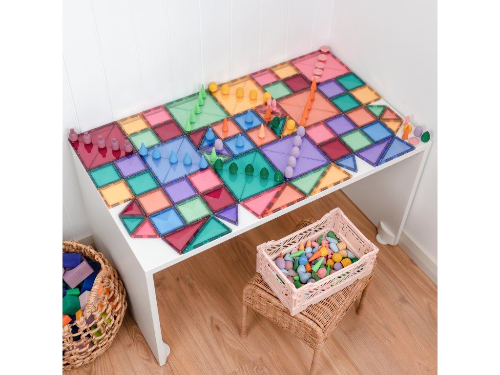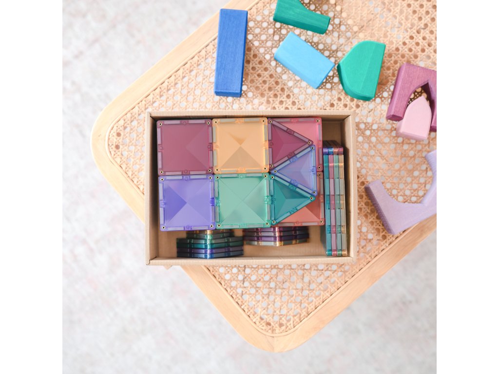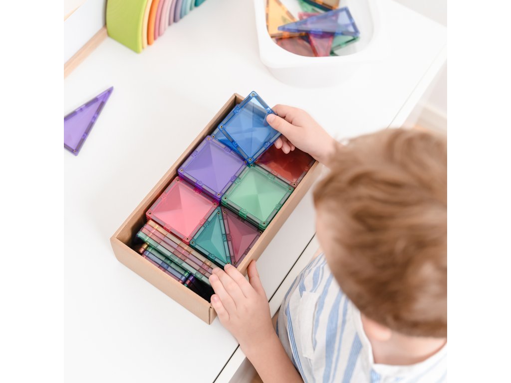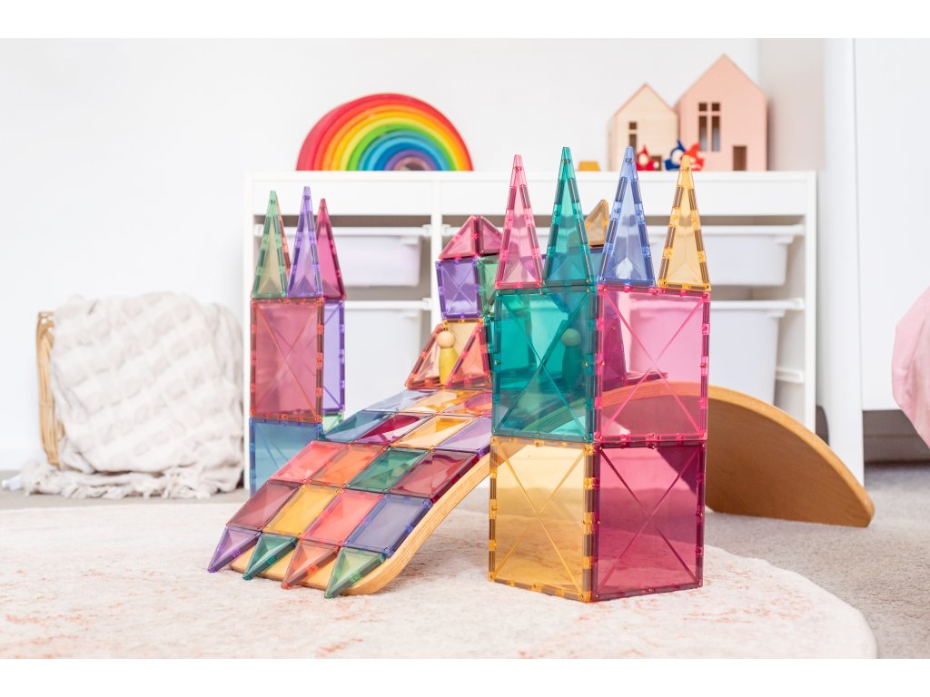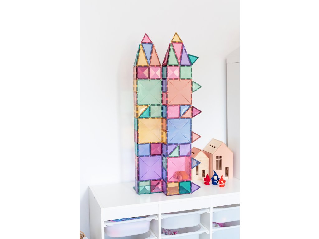 Tato 64 kusová sada v pastelových barvách je začátkem nekonečných staveb, díky kterým si děti stavěním trojrozměrných hradů, mostů nebo vesmírných raket nevědomky rozvíjejí PÁRA dovednosti od fyziky, magnetismu až po prostorové technologie, geometrie!