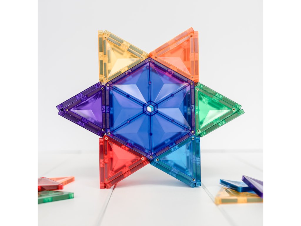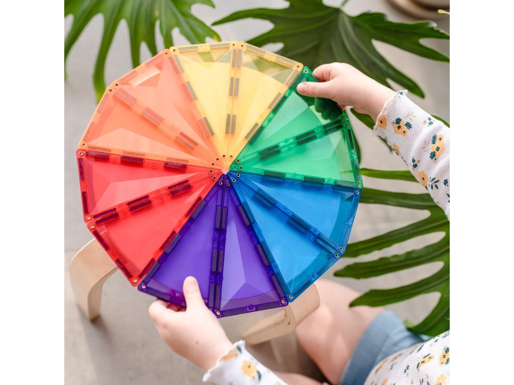 Tato 30 kusová sada v barvách duhy je klíčem k nekonečným stavbám, díky kterým si děti stavěním trojrozměrných hradů, mostů nebo mramorových běhů nevědomky rozvíjejí PÁRU od fyziky, vědy, magnetismu, až po prostorovou technologii geometrie!