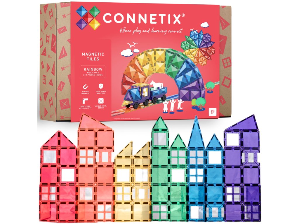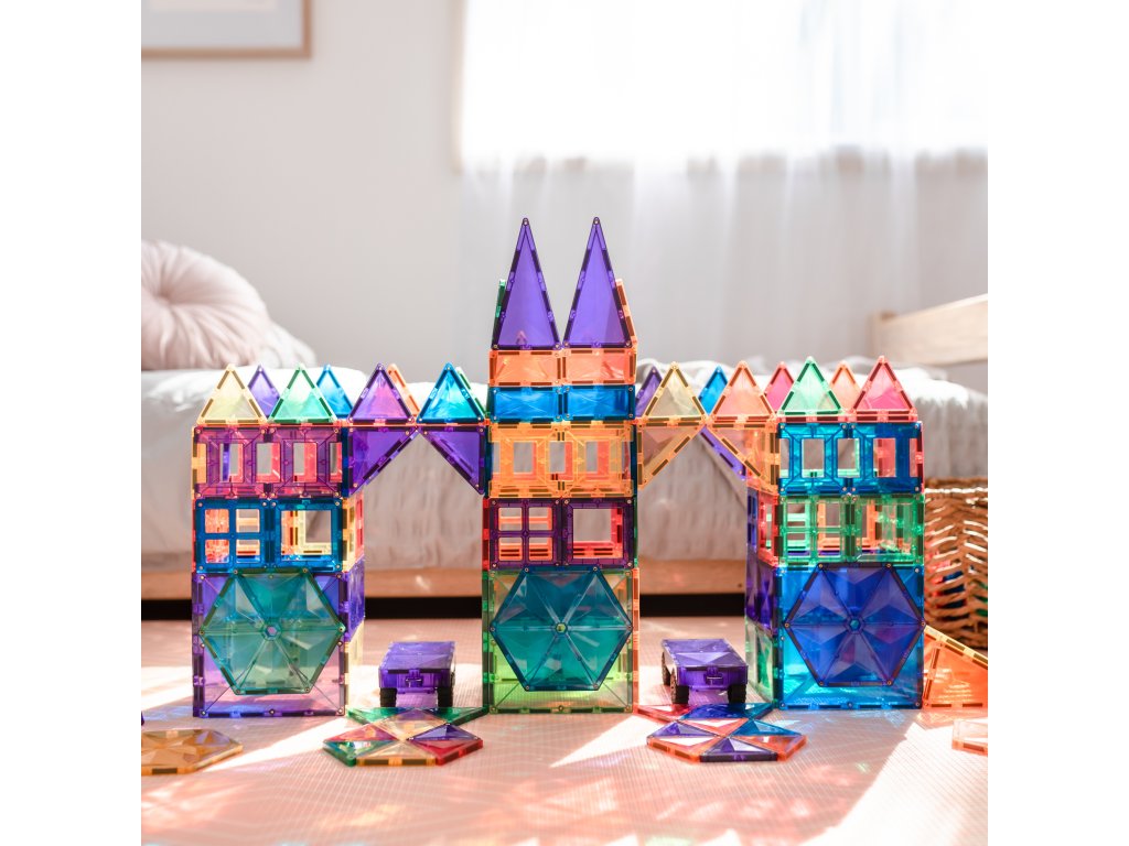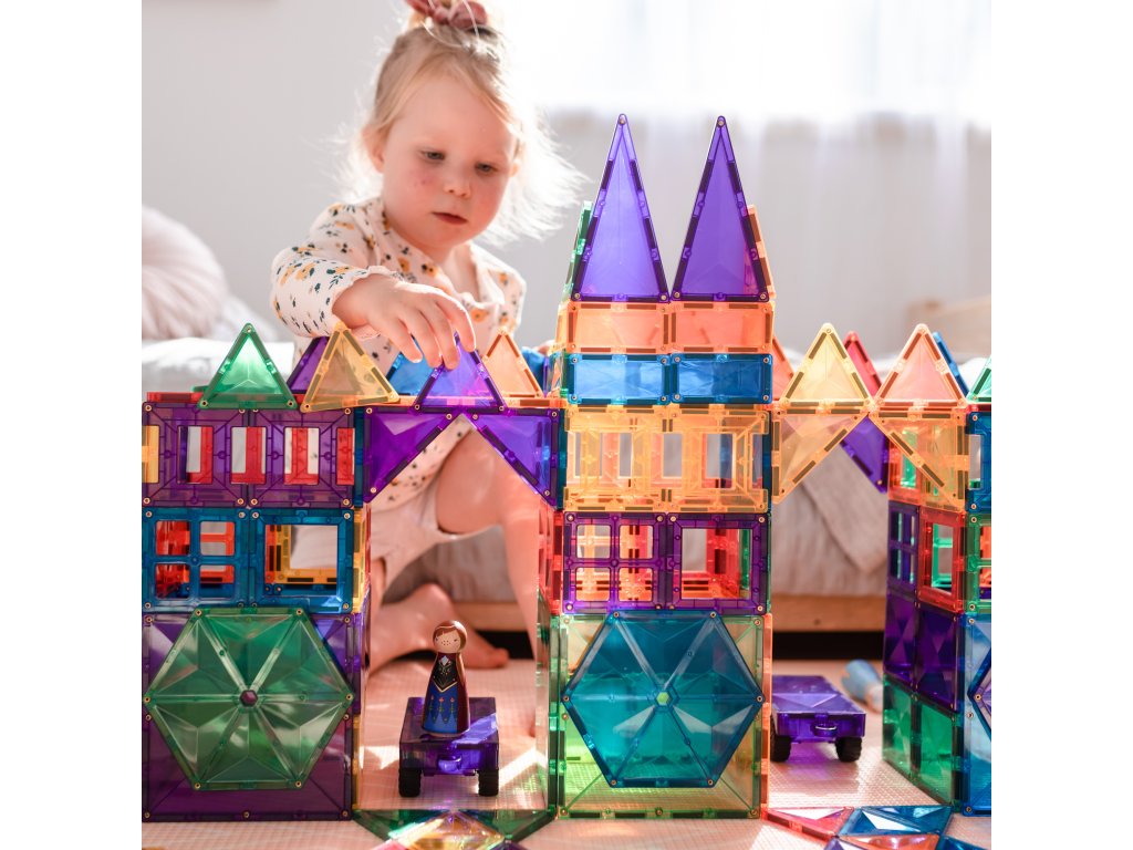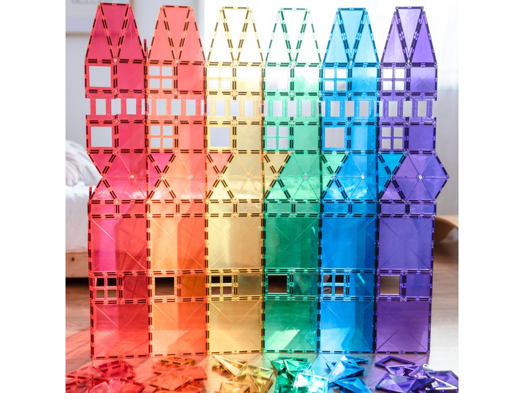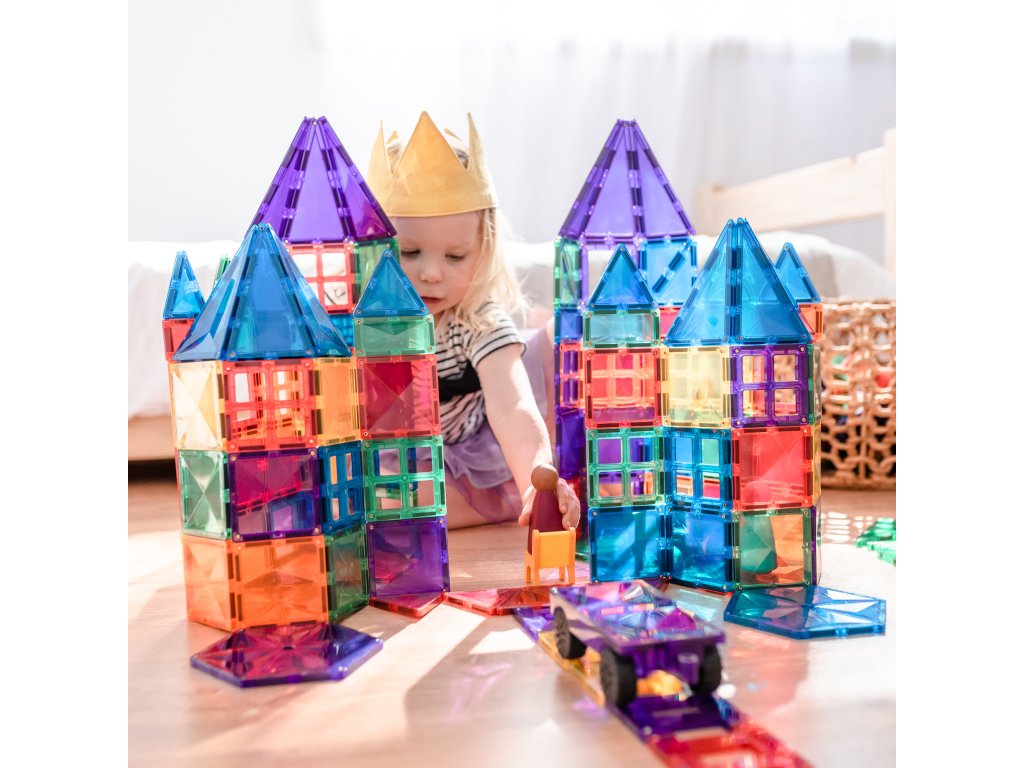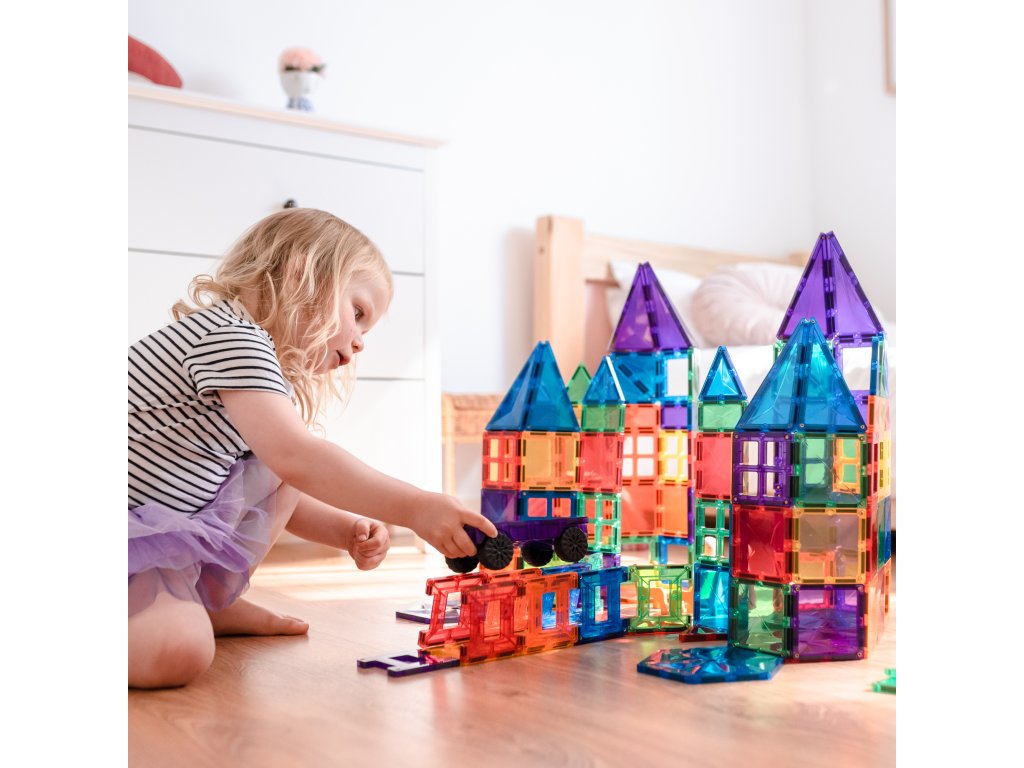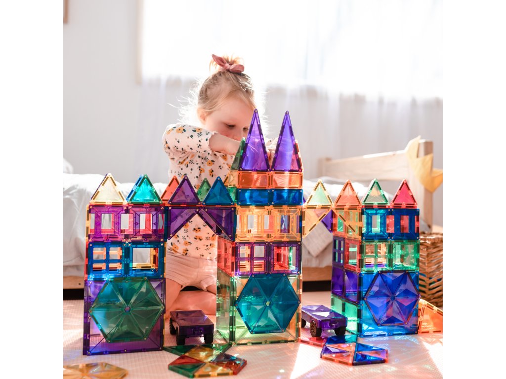Tato 212 kusová sada v barvách duhyje počátkem nekonečných staveb, díky kterým si děti stavěním trojrozměrných hradů, mostů nebo vesmírných raket nevědomky rozvíjejí PARNÍ dovednosti, od techniky fyziky, vědy, magnetismu, až po inženýrství prostorová geometrie!