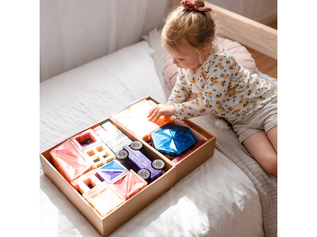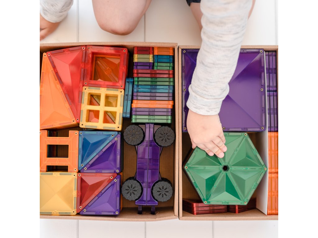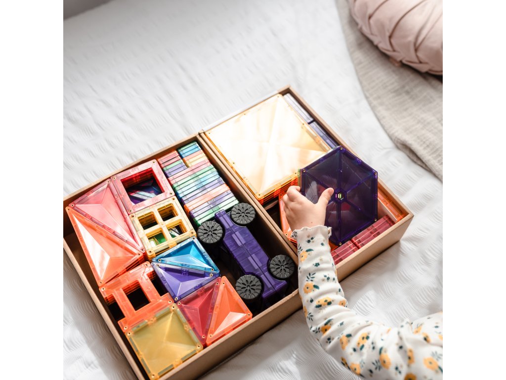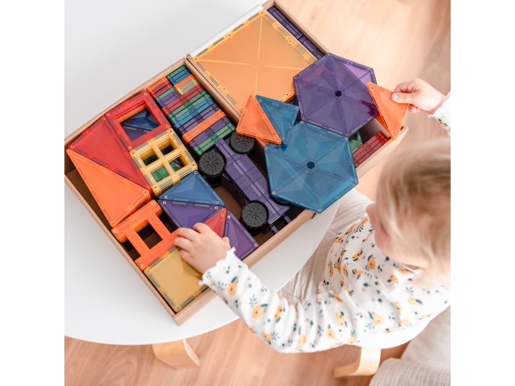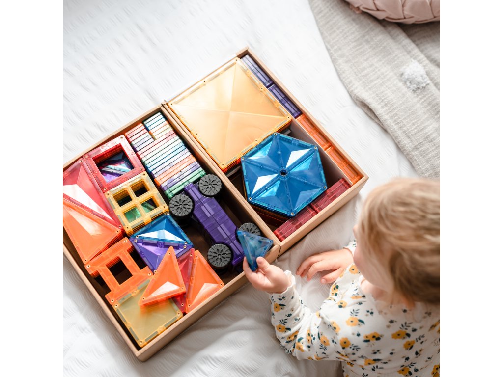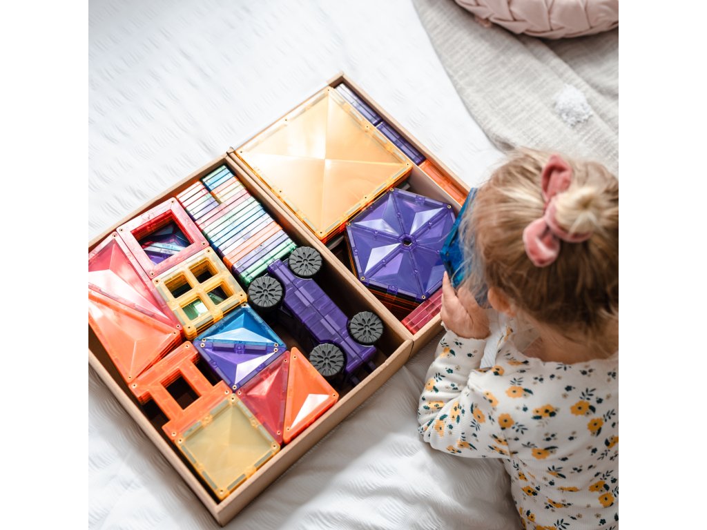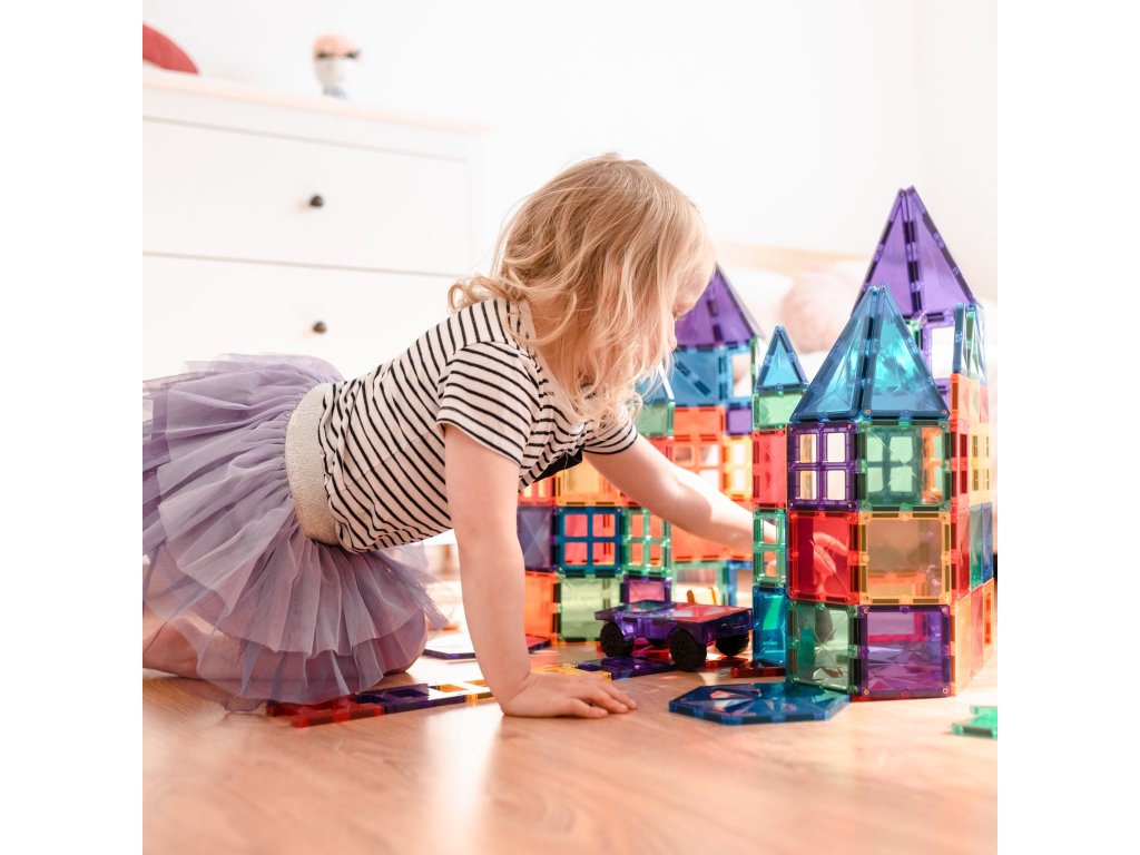 Tato 212 kusová sada v barvách duhyje počátkem nekonečných staveb, díky kterým si děti stavěním trojrozměrných hradů, mostů nebo vesmírných raket nevědomky rozvíjejí PARNÍ dovednosti, od techniky fyziky, vědy, magnetismu, až po inženýrství prostorová geometrie!