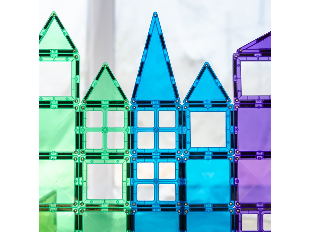 Transparentní, barevné obklady nebarví a jsou odolné proti poškození. Vestavěné, nýtované silné neodymové magnety umožňují blokům se navzájem přitahovat ze všech stran a vytvářet tak stabilní, trojrozměrné modely. Jedinečné "cvaknutí" spojování dlaždic přináší uspokojení malým inženýrům.