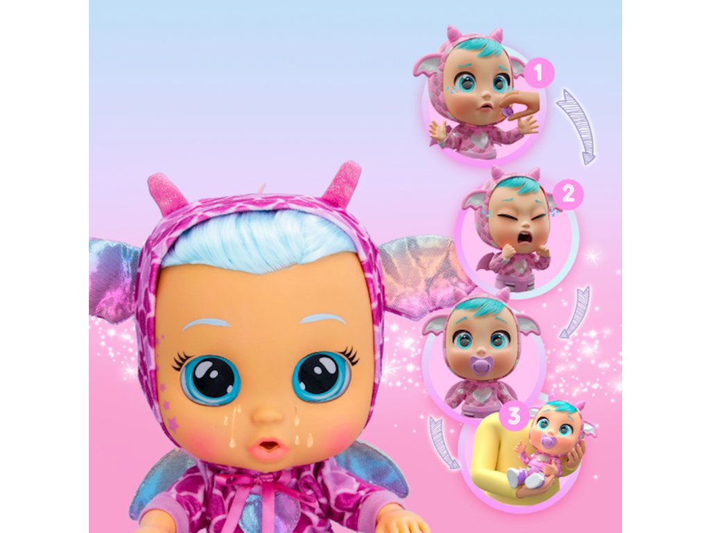Panenka Cry Babies Dressy Fantasty Bruny 904095Seznamte se se sérií Cry Babies Dressy Fantasy! Všechny panenky Cry Babies jsou nyní k dispozici v nové verzi, s všitými vlasy, skleněnýma očima a hladší, rafinovanější obličej. Navíc jsou lehčí a nositelné fantastický, roztomilý outfit! Samozřejmě jako všechny Cry Babies pláčou bez dudlíku a vydávají autentické zvuky plačícího miminka. Dejte jí to dudlík a přestane plakat. Můžete ho také položit a relaxovat uklidnila se.