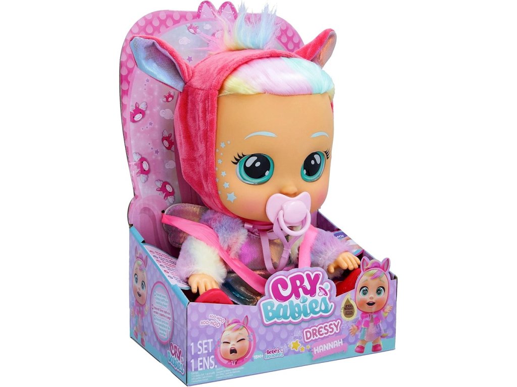 Panenka Cry Babies Dressy Fantasty Hannah 88436Seznamte se se sérií Cry Babies Dressy Fantasy! Všechny panenky Cry Babies jsou nyní k dispozici v nové verzi, s všitými vlasy, skleněnýma očima a hladší, rafinovanější obličej. Navíc jsou lehčí a nositelné fantastický, roztomilý outfit! Samozřejmě jako všechny Cry Babies pláčou bez dudlíku a vydávají autentické zvuky plačícího miminka. Dejte jí to dudlík a přestane plakat. Můžete ho také položit a relaxovat uklidnila se.
