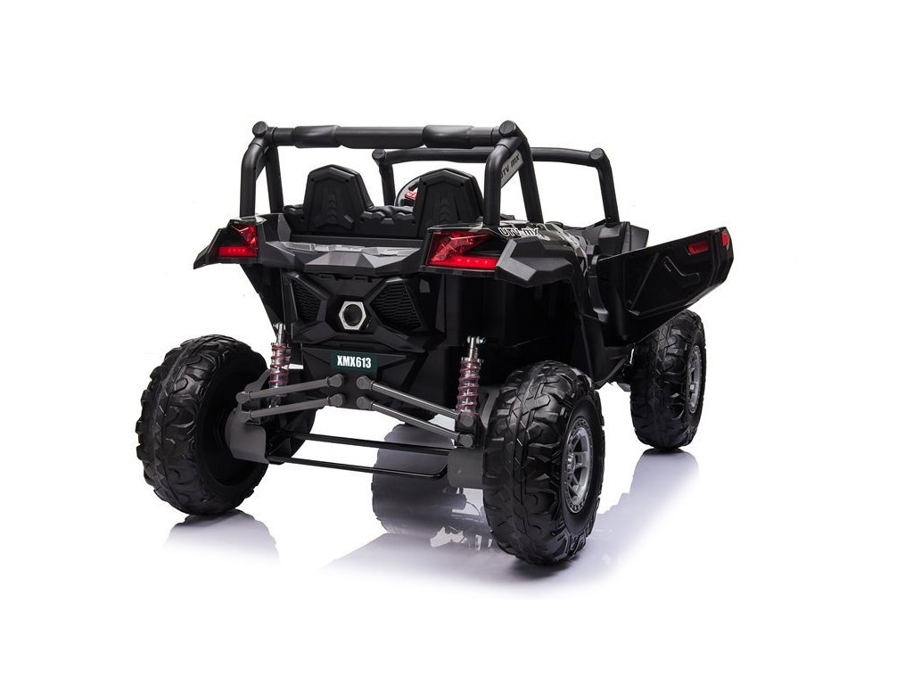 Vůz XMX613 byl navržen s důrazem na nejmenší detail, což má pozitivní dopad na mladého jezdce rally. Odolná a masivní konstrukce v kombinaci s kvalitními materiály jsou zodpovědné za skvělou zábavu po mnoho let a odolnost proti poškození. Atraktivitu modelu zvyšují otevírací dveře a tlumiče, na kterých je namontován, díky nimž bude jízda po nerovném a hrbolatém terénu mnohem příjemnější a dobrodružnější.
