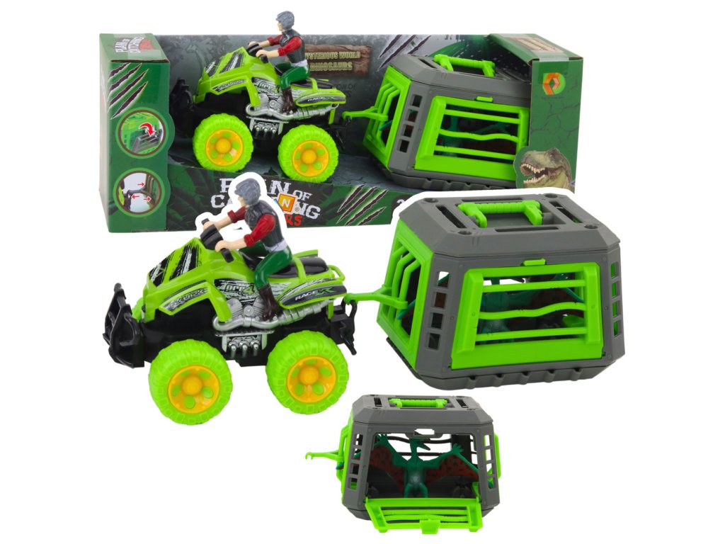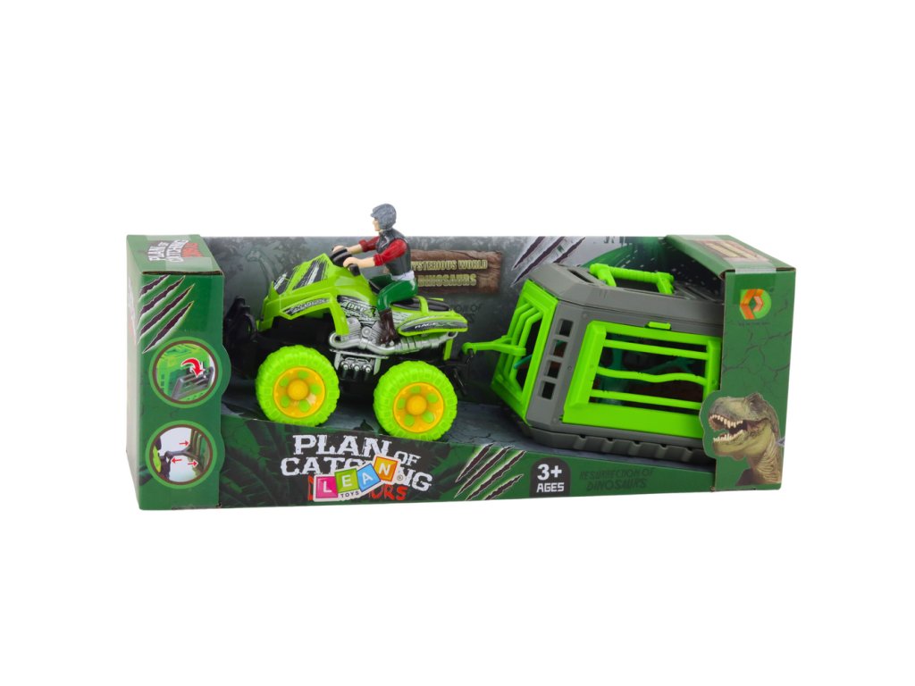 Čtyřkolka s klecí a figurkou řidiče je vzrušující hračka, která zavede dítě do světa mimořádných dobrodružství - přímo do divoké džungle, plné nebezpečných dinosaurů a fascinujících objevů. Barevné terénní vozidlo s velkými, výraznými koly bylo navrženo s ohledem na dynamickou hru – doma i venku. Díky připevněné kleci se batole může vžít do role odvážného lovce pravěkých plazů a dopravit chyceného dinosaura na bezpečné místo.