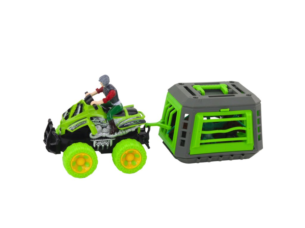 Sada obsahuje nejen pevnou čtyřkolku s připevněnou klecí, ale také figurku řidiče v ochranné přilbě a figurku dinosaura, které dohromady tvoří ucelenou scénu připravenou ke hře hned po vybalení z krabice.