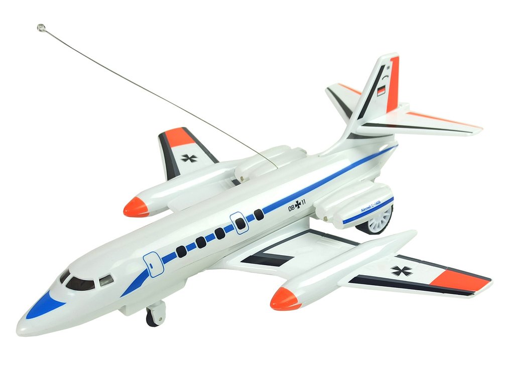 Letadlo se pohybuje vpřed, vzad, otáčí se a otáčí. Lze jej ovládat dálkovým ovladačem ve tvaru kormidla letadla. Frekvence, na které vysílá, je 40 MHz. Ve středu letadla a po stranách křídel jsou LED diody, které svítí a jsou vidět z dálky. Vytvořte si dráhu, vezměte cestující a začněte dobrodružství!