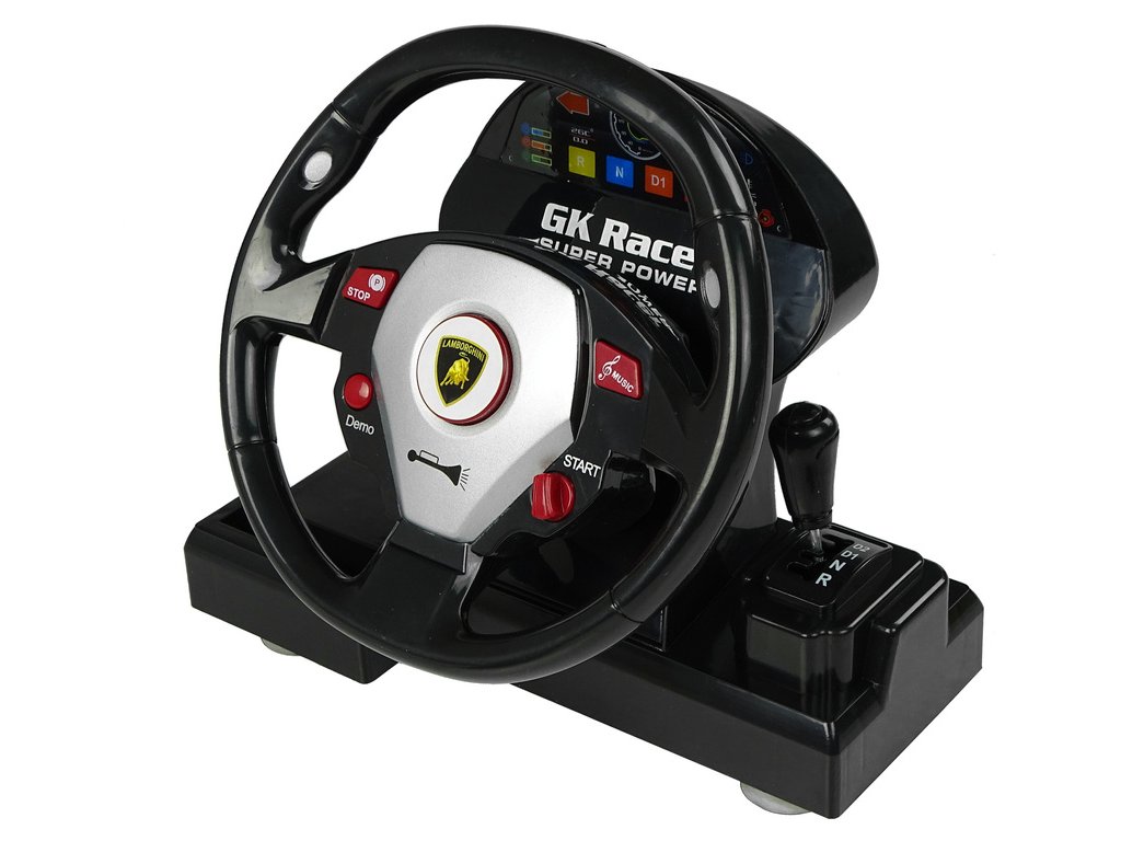 Dálkový ovladač ve tvaru volantu, který je součástí sady, je vybaven frekvencí 2,4G, která snižuje jakékoli rušení během hry. Na spodní straně má přísavky, takže si batole může připevnit dálkové ovládání na stůl a posadit se za volanty rychlého auta. Volant umožňuje jízdu vpřed, akceleraci, couvání a zatáčení. Mezi další funkce patří spouštění, zvukové efekty jako klakson a zvukové stopy. Při řazení se na displeji na volantu rozsvítí správný převodový stupeň. Začněte závodit v pohodlí domova.