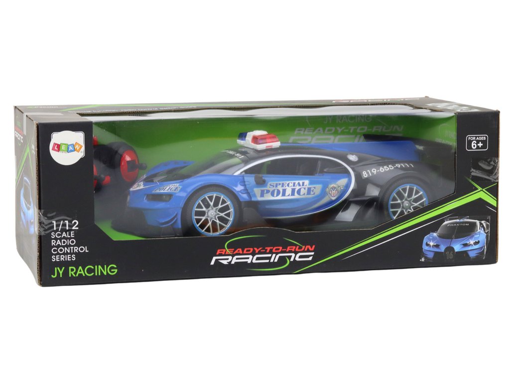 Dálkově ovládané policejní RC auto v měřítku 1:12, modrá barva
