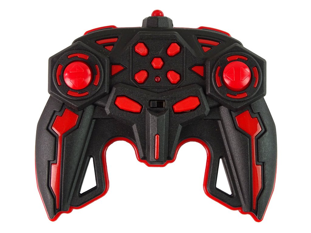 Černý dálkový ovladač s červenými tlačítky je lehký, šikovný a ideální pro malé ručičky. Jeho rozměry jsou: 13 cm x 10 cm x 4 cm. Rozměry auta jsou 29 cm x 18 cm x 16 cm. Sada obsahuje auto, dálkový ovladač, baterii 3,7V 1200mAh a nabíječku s USB vstupem pro nabíjení baterie.