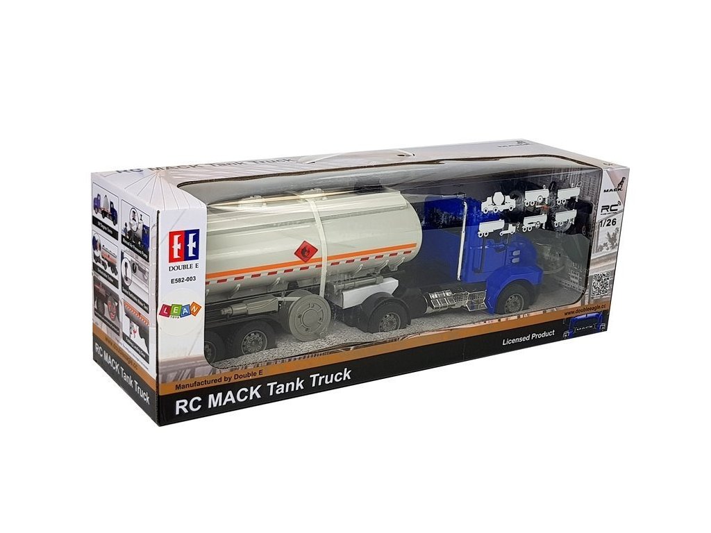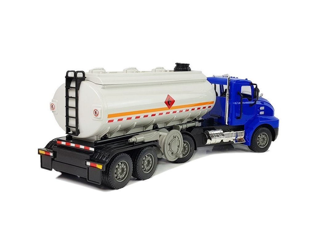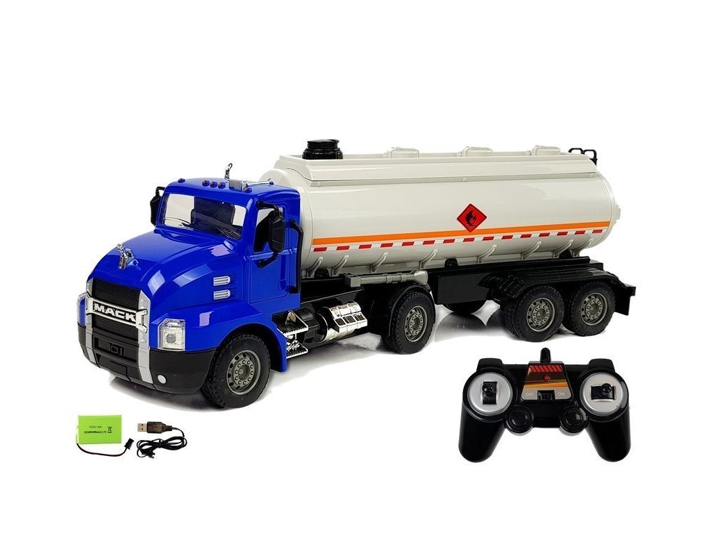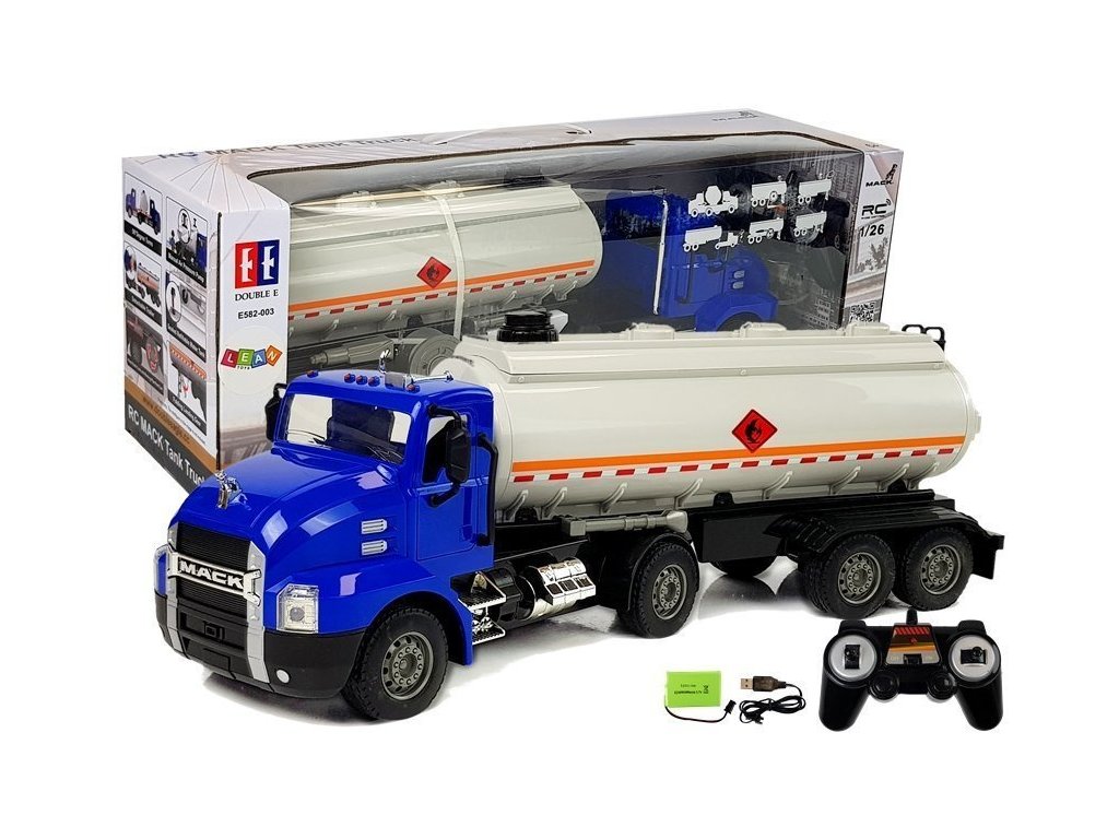 Dálkově ovládané vozidlo má modrou kabinu s bílým přívěsem. Zdobí ji kontrastní černé detaily. Plastové nákladní auto s odnímatelným přívěsem je vybaveno světelnými a zvukovými efekty. Velkým lákadlem pro vaše dítě je, že nádržku lze naplnit vodou! Poté lze hadici z cisterny vyprázdnit a po dodání navinout na cívku. Podvozek je vysouvací a skládací, takže můžete opustit cisternu a přesunout se pouze nákladní automobil. Vyrobeno v měřítku 1:26.
