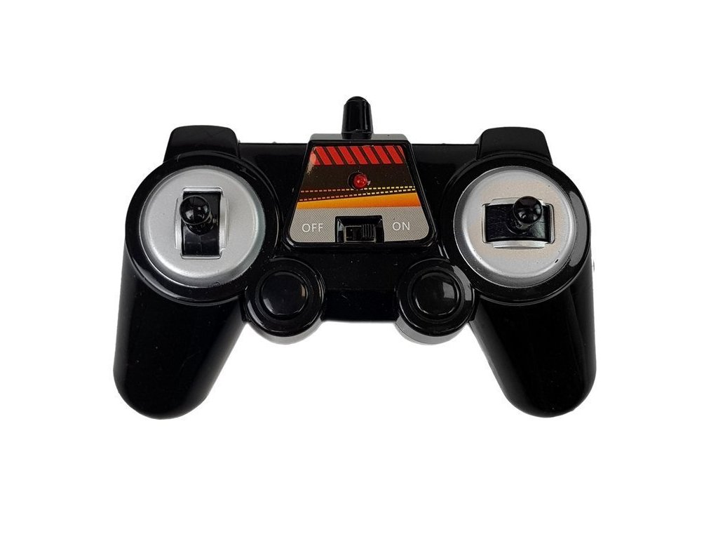 Obsluha dálkového ovladače R/C je velmi jednoduchá, dva joysticky pro směr a dvě tlačítka pro rychlost a zvuk /