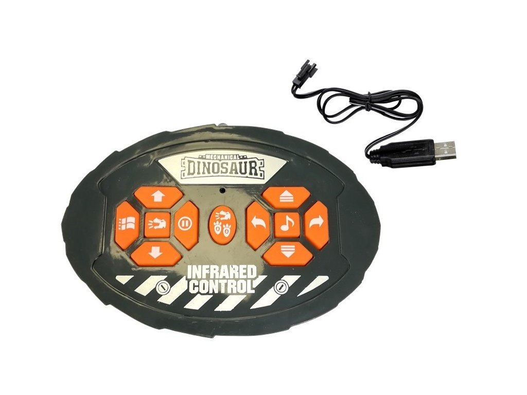 Dinosaurus se ovládá dálkovým ovladačem, který pohodlně padne do ruky. Můžete mu dávat příkazy, jako je pohyb, vydávání zvuků a také demo režim.