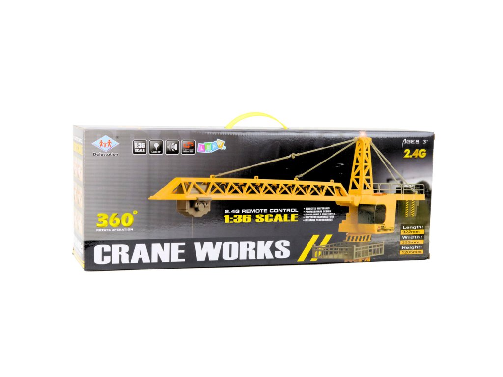 Tento realistický stavební jeřáb s dálkovým ovládáním 2,4 GHz je jedinečnou hračkou pro každého mladého stavitele a nadšence do stavebních strojů. Vyrobený v měřítku 1:36, zaujme svou výškou přes 120 cm, realistickým vzhledem a bohatou funkcionalitou, věrně replikuje skutečný jeřáb pracující na staveništi.