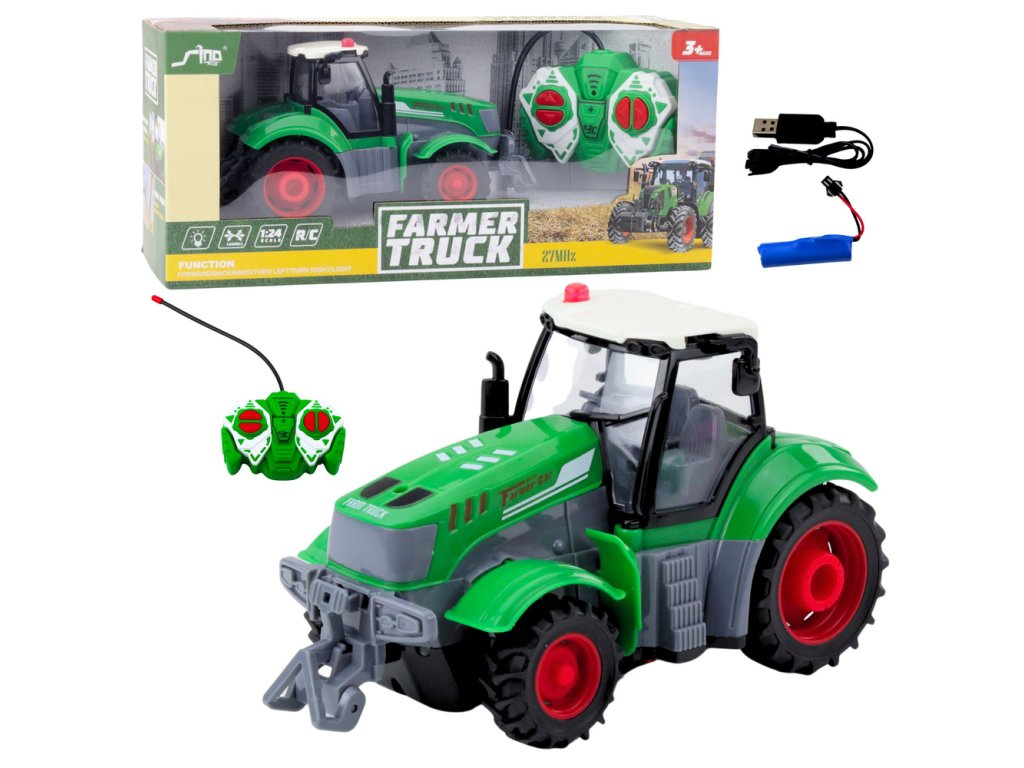 Dálkově Ovládaný RC Zemědělský Traktor Zelený 1:24
