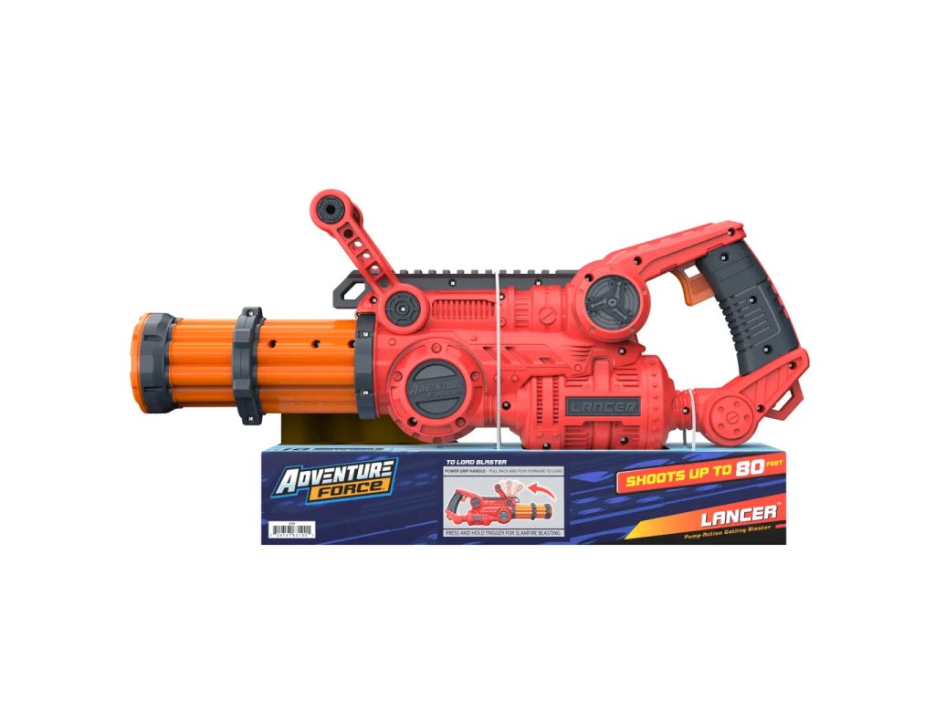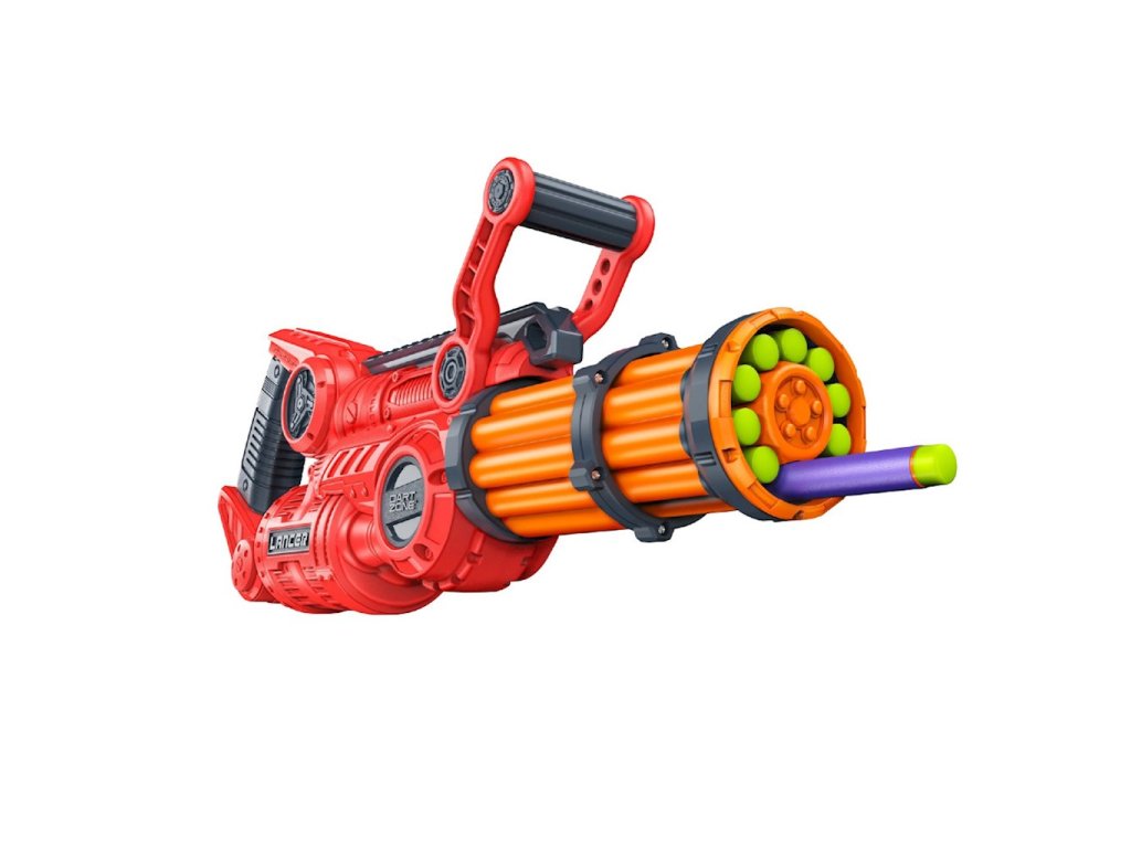 Dart Zone Nitroshot Lancer 6319 Set + 3-cílový elektronický terč + 30 šipekDart Zone Nitroshot Lancer je odpalovač, který kombinuje výkon se snadným použitím. Je vybaven otočným zásobníkem na 10 šipek, můžete jej snadno nabít zepředu a okamžitě vystřelit šipky. Je navržen v červeném a oranžovém barevném provedení a je ideální pro rychlou akci na krátké a střední vzdálenosti a jeho pružinový mechanismus zajišťuje vynikající výkon při zachování mobility.