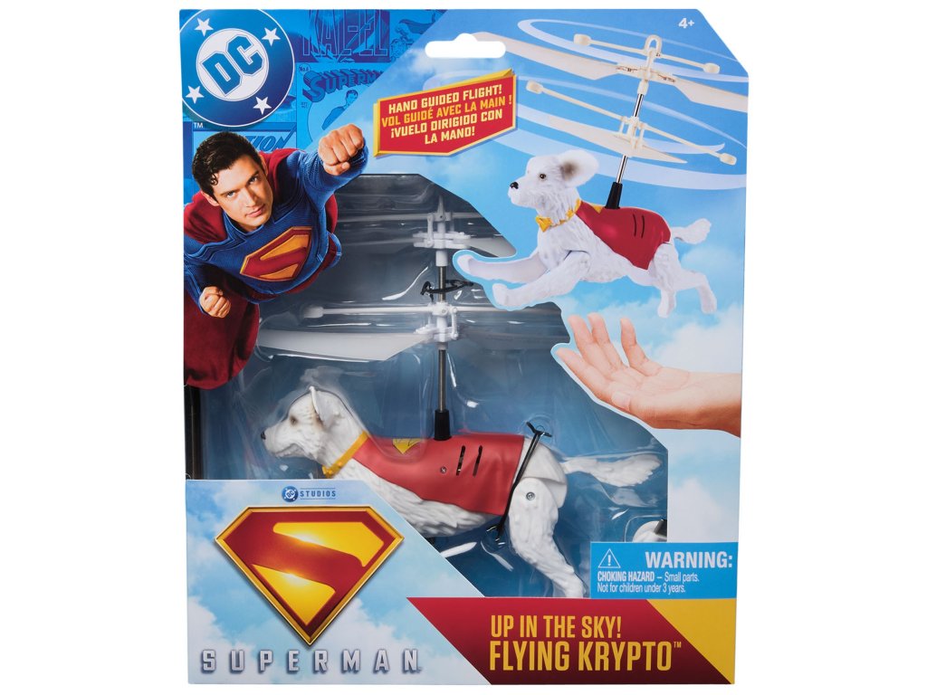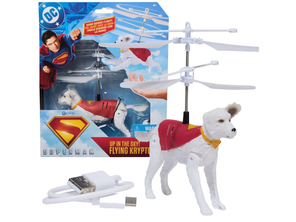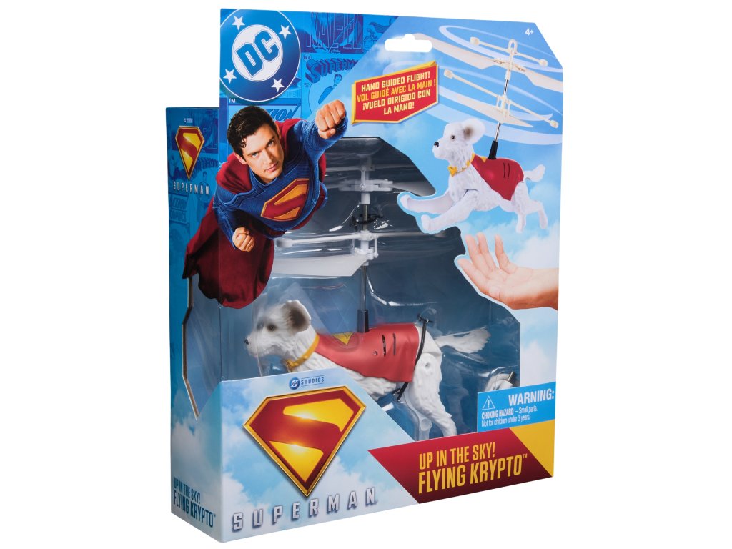 Krypto Dog je interaktivní, realistická figurka, která opravdu létá! Figurka, vybavená velkými, bílými vrtulemi, se vznáší ve vzduchu a díky vestavěným senzorům reaguje na pohyb vašich rukou, což vám umožňuje řídit její let. Během letu můžete pozorovat, jak pes spokojeně vrtí ocasem.