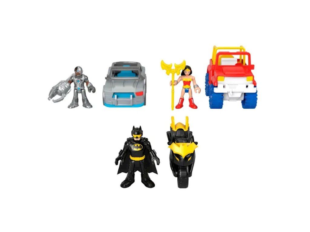 • Děti mohou poslat každého DC superhrdinu do akce ve vlastním záchranném vozidle: Batmana na Batcycle, Wonder Woman ve čtyřkolce a Cyborga v závodním autě.