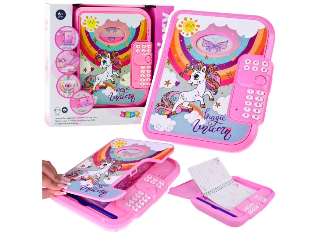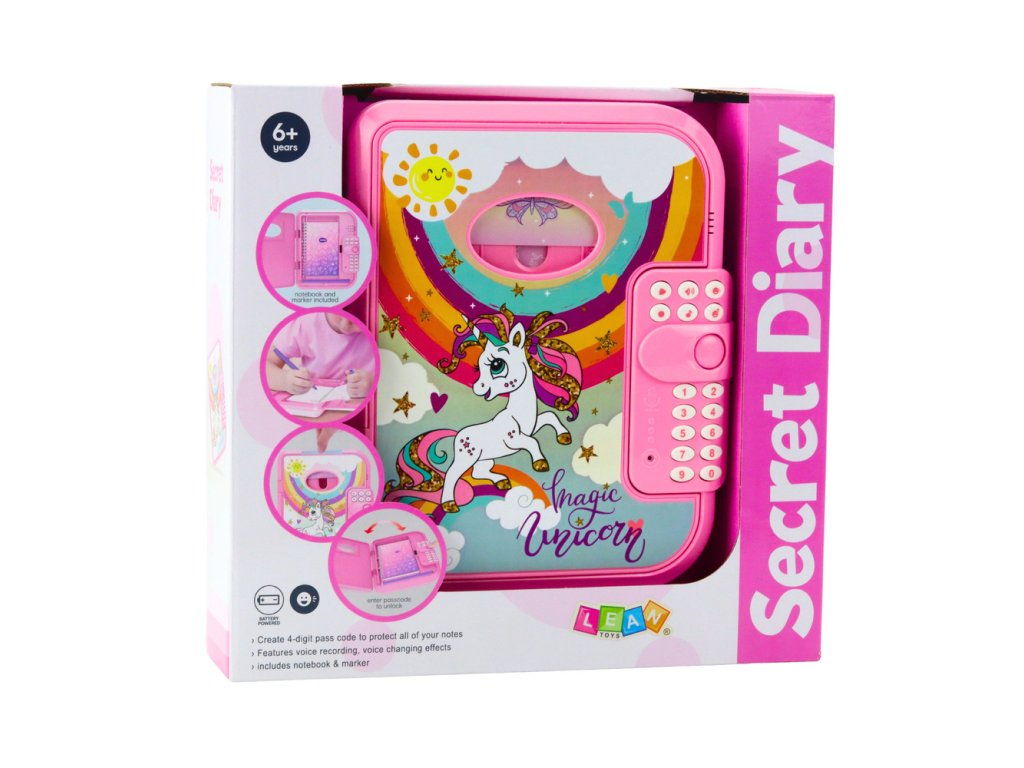 Můj tajný kouzelný deník je unikátní interaktivní sada, která dětem umožňuje vytvářet si vlastní poznámky a bezpečně je uchovávat. Deník je uzamčen čtyřmístným heslem, které zajišťuje, že všechny poznámky a tajemství zůstanou plně chráněny před neoprávněným přístupem. Jednoduše zadejte kód, deník se otevře a můžete začít hrát nebo si zapisovat své nejdůležitější myšlenky.