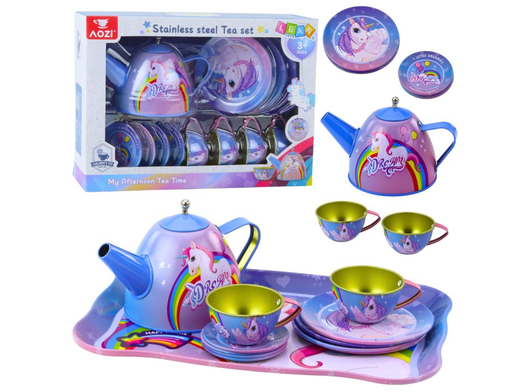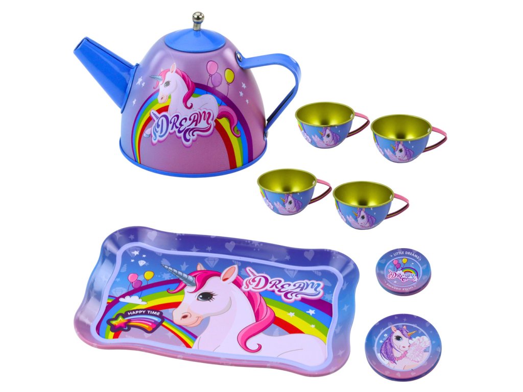 KOVOVÁ ČAJOVÁ SOUPRAVA PRO DĚTI – TÉMA JEDNOROŽEC