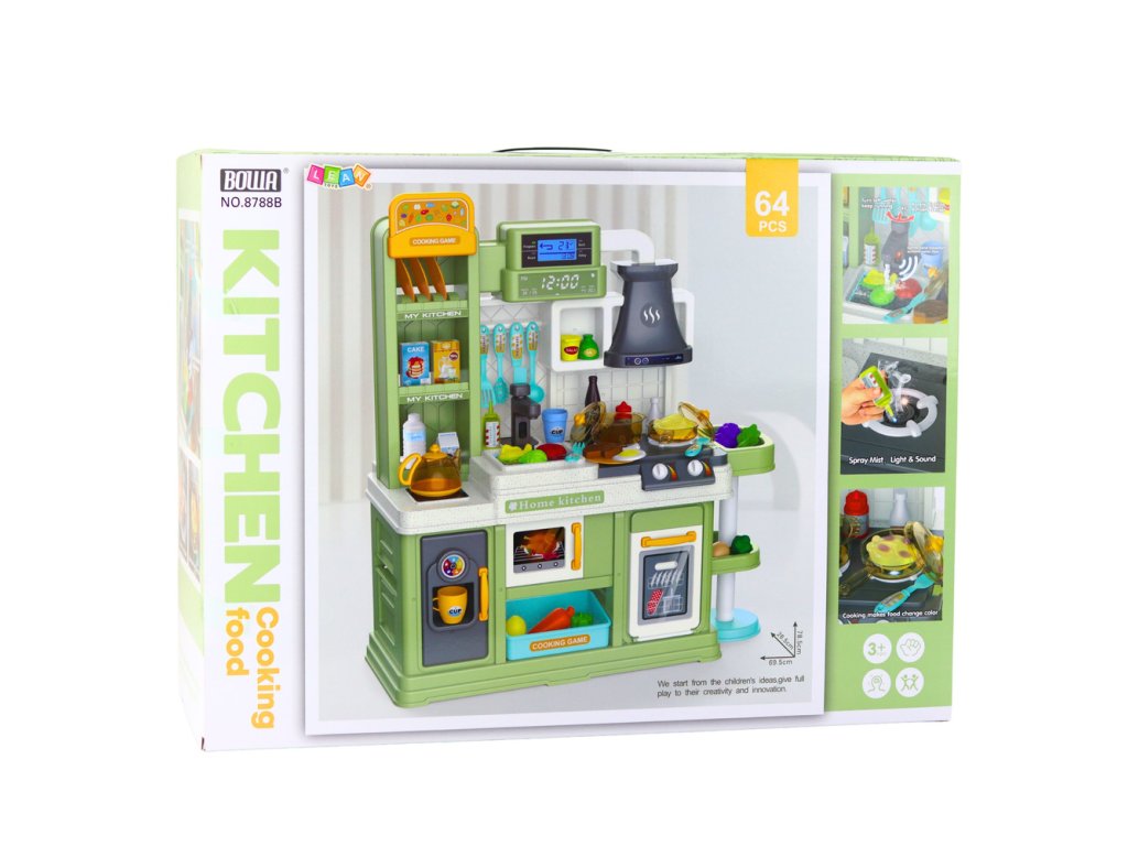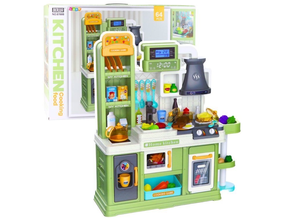 Tato hračková kuchyňka pro děti je rozsáhlá interaktivní sada skládající se ze 64 dílků, která umožňuje malým dětem zapojit se do realistické hry s vařením. Je vybavena světelnými, zvukovými a parními efekty a vytváří skutečně autentický zážitek z vaření. Speciální prvky jídla navíc mění barvu v závislosti na teplotě, což hru ještě více umocňuje a podporuje kreativitu.