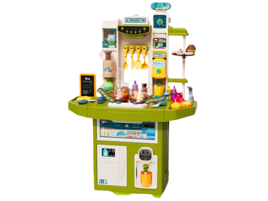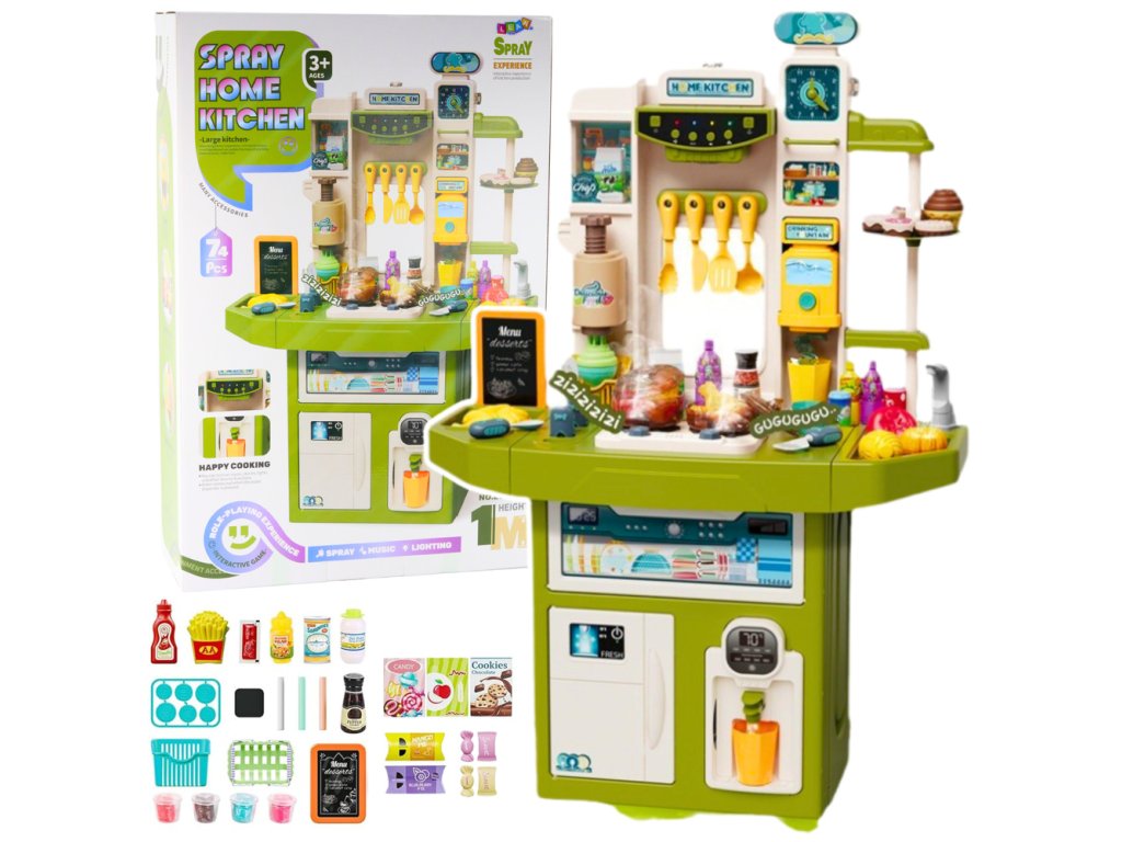 Velká dětská kuchyňka SPRAY HOME KITCHEN je výbornou volbou pro malé nadšence do vaření. Je vybavena až 71 prvky a poskytuje dětem možnost bezplatné, kreativní a realistické zábavy při vaření, pečení, podávání jídel a mytí nádobí. Bohatá sada příslušenství obsahuje mimo jiné hrnce, příbory, potravinářské výrobky, zeleninu, ovoce, talíře, nápoje a koření, díky kterým se dítě může cítit jako ve skutečné kuchyni.