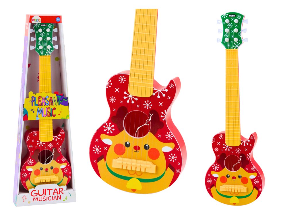Hračková kytara pro děti je skvělou volbou pro malé milovníky hudby, kteří se chtějí cítit jako skuteční kytaristé. Kytara je navržena ve tvaru elektrické kytary, což jí dodává moderní a profesionální vzhled. Celá je ozdobena půvabným motivem veselého soba, který nástroji dodává přátelský charakter a vybízí ke hře.
